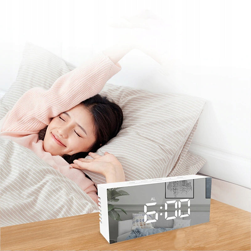 Atsibuskite kiekvieną rytą su nauja energija ir moderniu stiliumi! Šis elektroninis žadintuvas yra ne tik funkcionalus prietaisas laiko ir temperatūros stebėjimui, bet ir elegantiškas interjero akcentas. Jo unikalus dizainas su veidrodiniu LED ekranu suteiks jūsų erdvei išskirtinumo. Pamirškite nuobodžius standartinius žadintuvus – rinkitės sprendimą, kuris derina technologijas, dizainą ir praktiškumą.