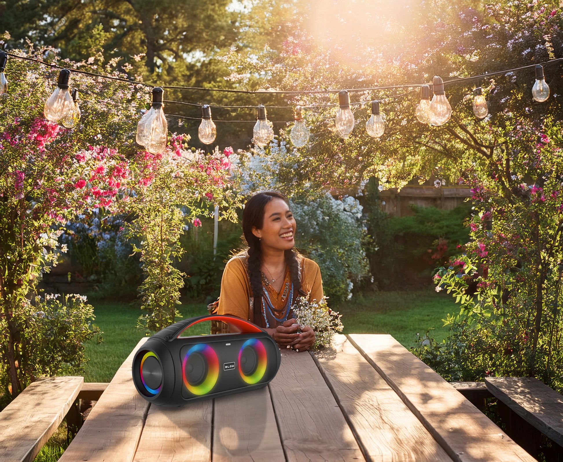 Atraskite naują muzikos ir pramogų dimensiją su šiuo galingu ir universaliu nešiojamu Bluetooth garsiakalbiu Boombox. Sukurtas 2023/2024 metų hitams, šis įrenginys taps nepakeičiamu Jūsų vakarėlių, iškylų gamtoje ar jaukio vakaro palydovu. Pamirškite laidų raizginius – belaidis ryšys per Bluetooth leis Jums be vargo susieti išmanųjį telefoną, planšetinį kompiuterį ar kitą suderinamą įrenginį ir mėgautis mėgstama muzika. Dėl integruotos TWS funkcijos galite lengvai sujungti du tokius garsiakalbius ir sukurti įspūdingą stereo garsą, kuris pripildys bet kurią erdvę.