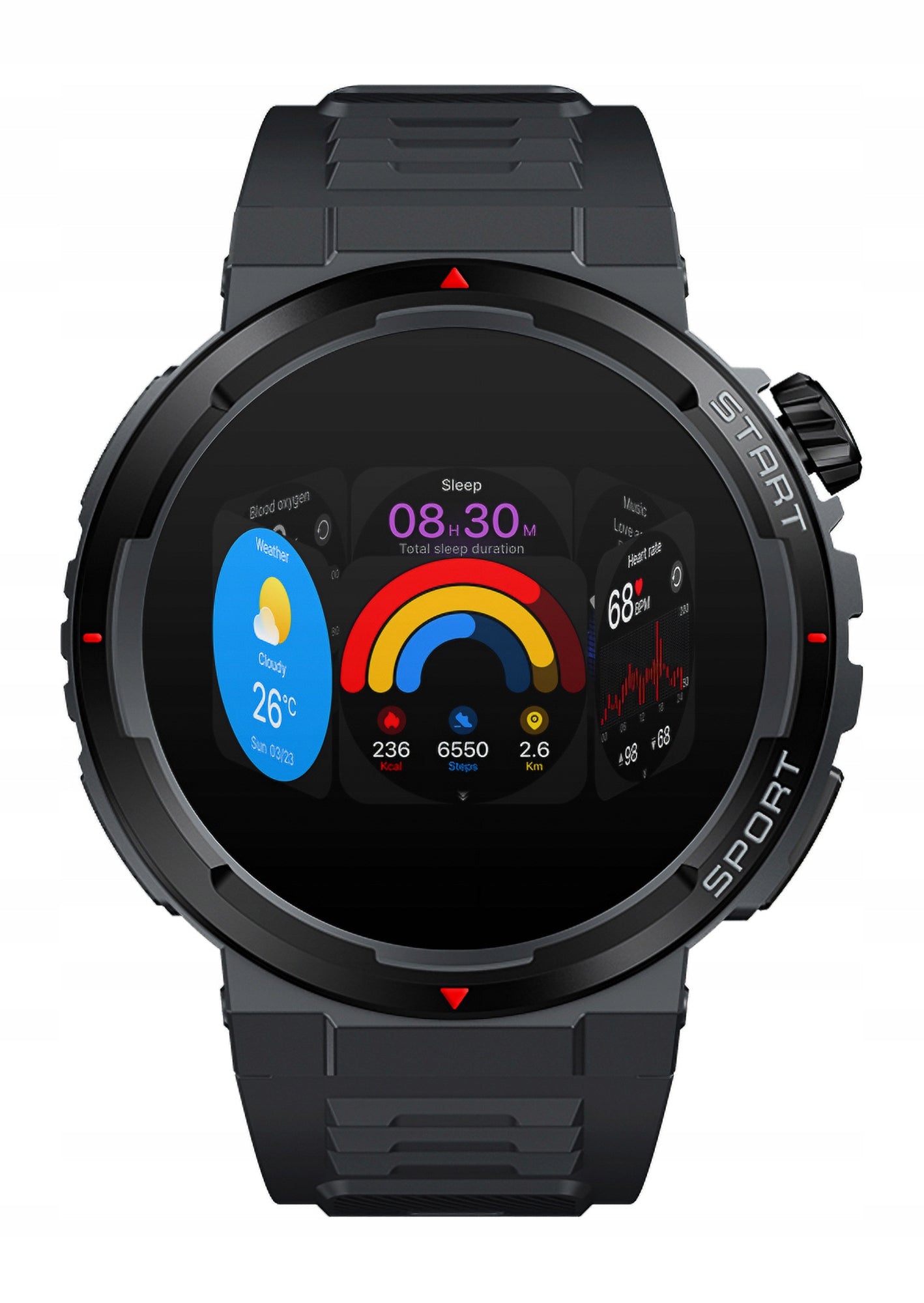 - Išsamios sveikatos stebėjimo funkcijos: širdies ritmas, SpO2, miego analizė.