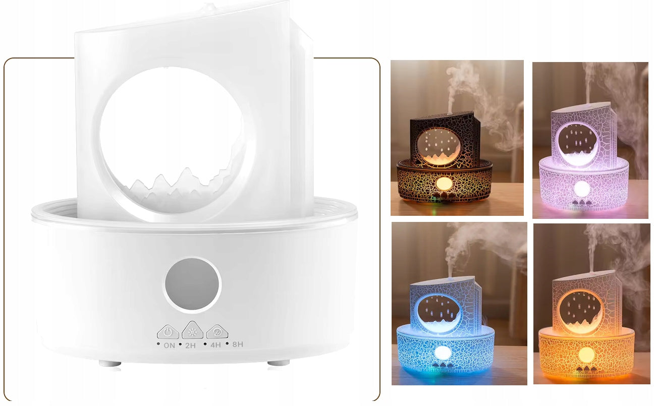- Daugiafunkcionalumas: veikia kaip drėkintuvas, aromaterapijos difuzorius ir naktinė lempa.