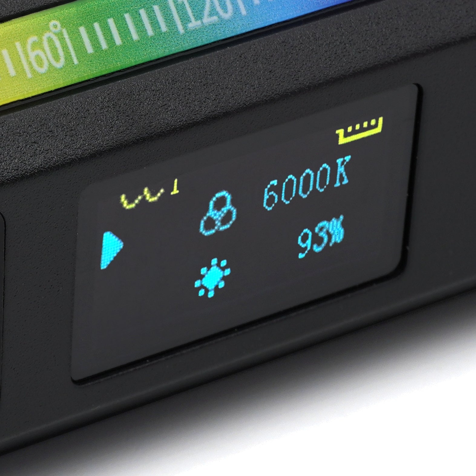 Ulanzi i-Light 2637 RGB atveria duris į neribotas apšvietimo galimybes. Galite rinktis iš 360 skirtingų spalvų RGB paletėje, reguliuoti spalvos sodrumą ir dirbti su plačiu spalvos temperatūros diapazonu nuo 2500K iki 9000K. Integruotas dimeris leidžia sklandžiai reguliuoti šviesos intensyvumą nuo 0 iki 100% su 1% žingsniu, užtikrinant, kad visada gausite būtent tokį apšvietimą, kokio reikia jūsų projektui. Mini OLED ekranas patogiai atvaizduoja visas svarbiausias nustatymų vertes – spalvos temperatūrą, ryškumą, baterijos lygį ir pasirinktą režimą.