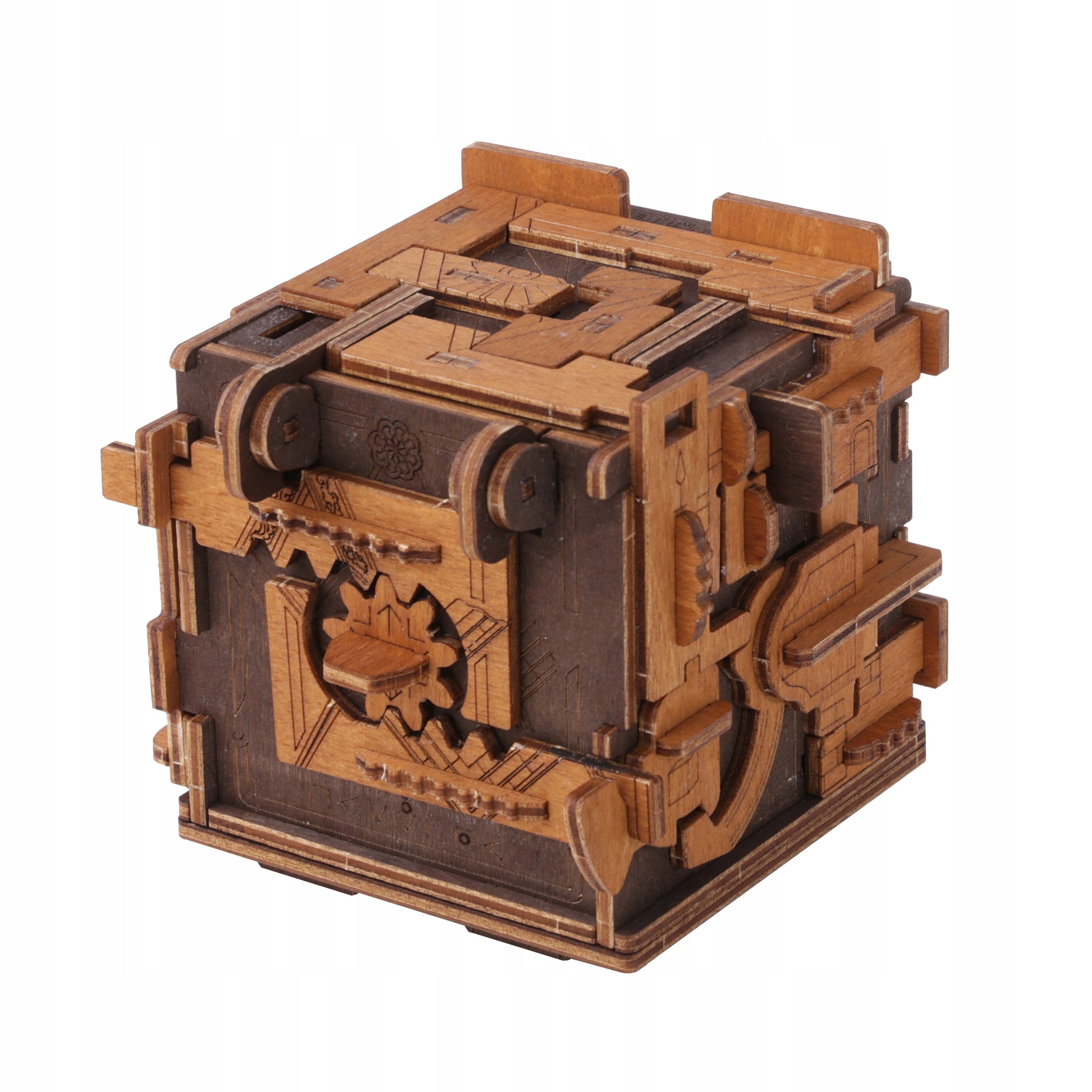Ši medinė dėlionė siūlo daugiau nei tik tradicinį detalių sujungimą. Tai patirtis, kuri apima kelias skirtingas veiklas: precizišką surinkimą, loginį mąstymą ir galiausiai – paslaptingo mechanizmo atskleidimą. Jūs turėsite ne tik atkurti dėžutės formą, bet ir iššifruoti jos veikimo principus, kad galėtumėte ją atidaryti. Su surinkimo laiku, siekiančiu apie 300 minučių, tai puikus projektas savaitgaliui ar ilgesniam vakarui. Modelio matmenys po surinkimo (8,7x9,5x9,5 cm) daro jį kompaktišku, tačiau pakankamai įspūdingu.