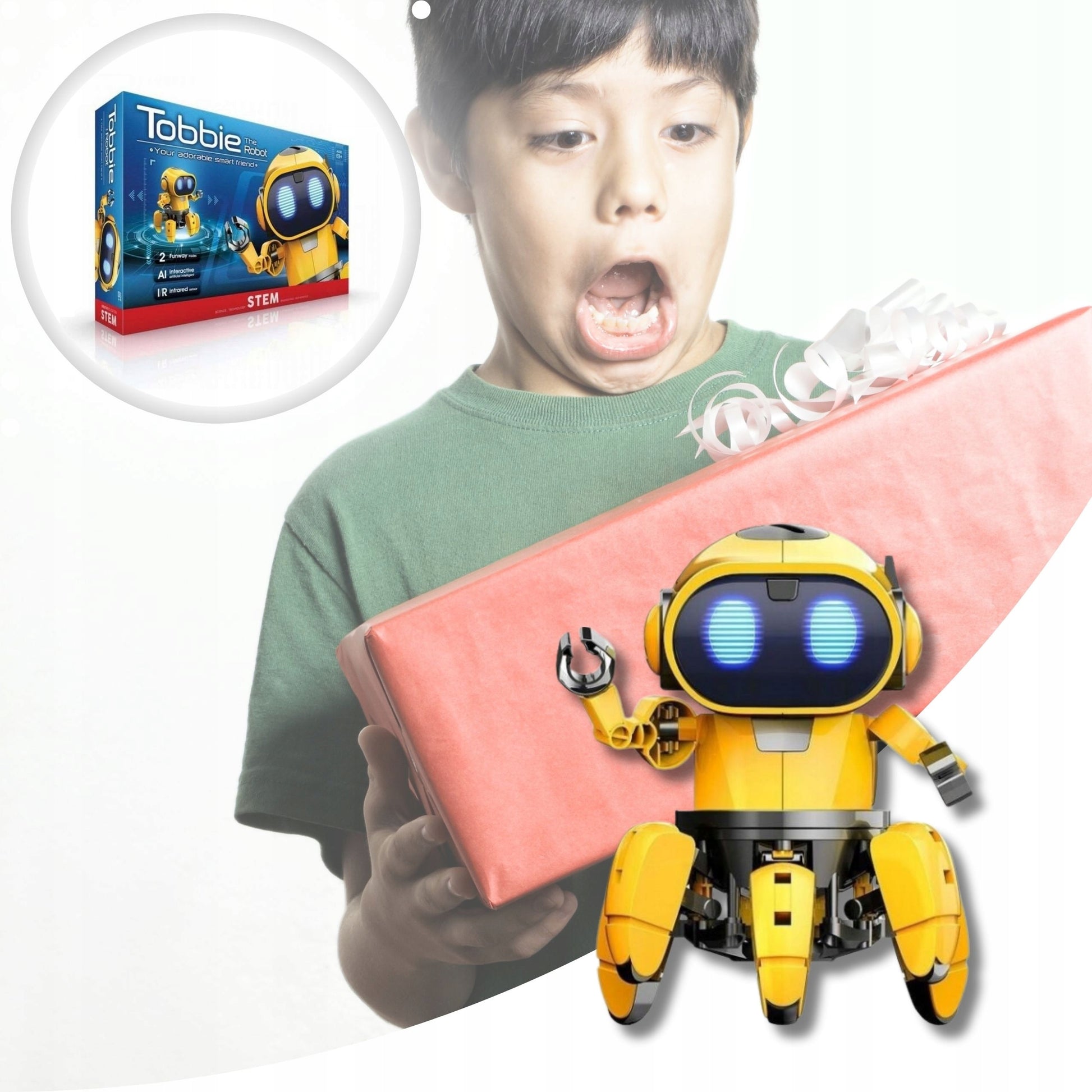 Ar ieškote dovanos, kuri ne tik linksmintų, bet ir skatintų vaiko protą bei lavintų kūrybiškumą? Susipažinkite su interaktyviu robotu TOBBIE! Šis robotas – tai ne tik žaislas, bet ir edukacinė priemonė, kurią Jūsų vaikas galės savarankiškai surinkti. Su 107 detalėmis ir aiškia, iliustruota instrukcija, surinkimas taps smagiu ir naudinga patirtimi. Kai robotas bus paruoštas, prasidės tikrosios linksmybės – TOBBIE sužavės savo dirbtiniu intelektu, gebėjimu bendrauti su aplinka bei įspūdingais šviesos ir garso efektais. Tai puiki dovana berniukui, skatinanti jo susidomėjimą robotika ir inžinerija nuo pat mažens.
