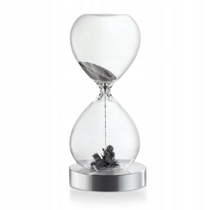 Vietoje įprasto smėlio čia panaudotos ferito dalelės, kurios krisdamos susiformuoja į įvairias formas – tai sukuria magnetinio pagrindo efektas, paverčiantis kiekvieną laikrodžio apvertimą nauju reginiu.