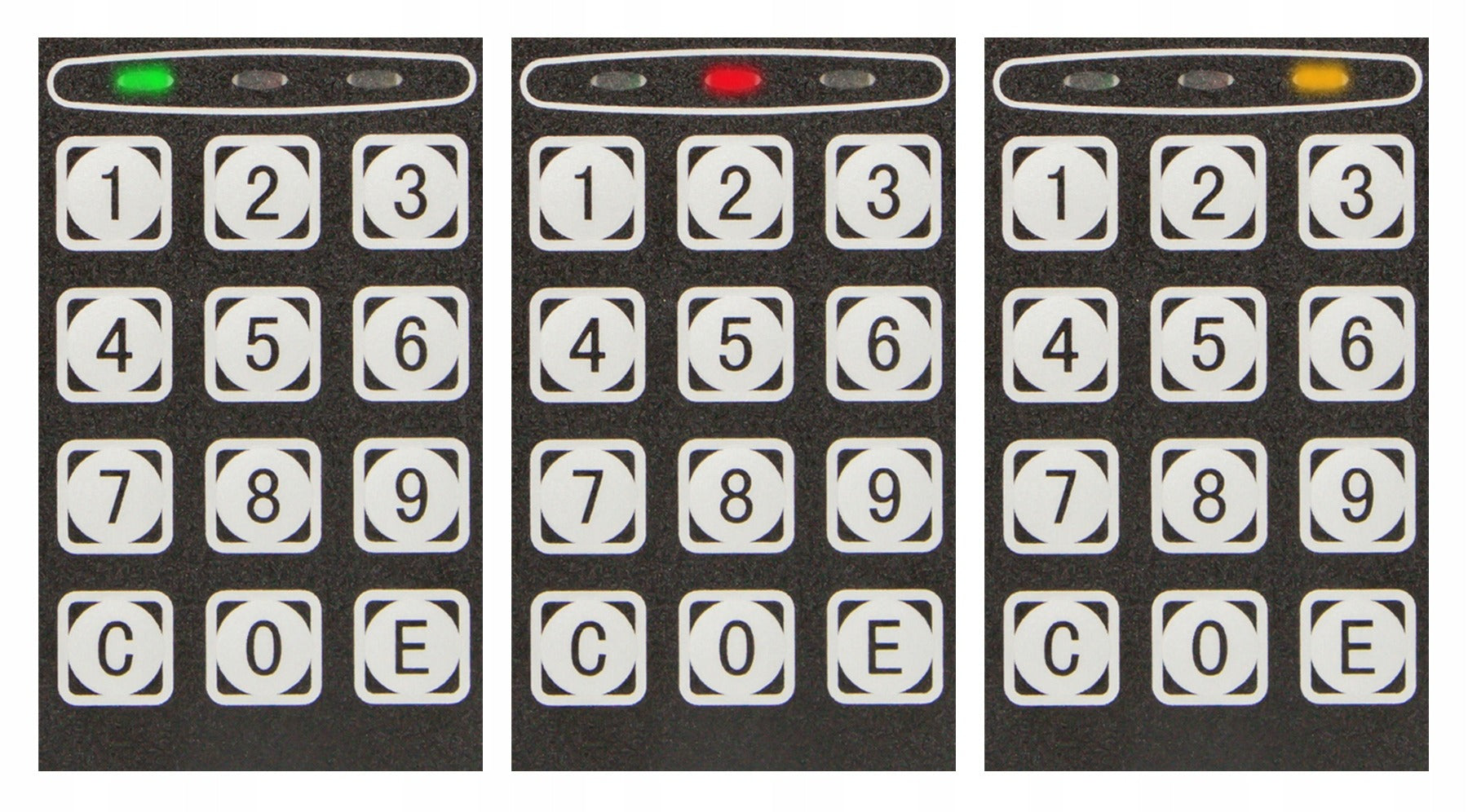 ✅ Trijų spalvų signalinės diodai: žalias – teisingas kodas, oranžinis – neteisingas kodas, raudonas – mažas baterijos įkrovimas