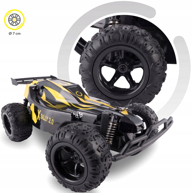 „X-Rally 2.0“ nėra paprastas žaislinis automobilis. Jis sukurtas atlaikyti intensyvų žaidimą ir pasiūlyti įspūdingą patirtį. Nepriklausoma pakaba, panaši į profesionalių visureigių, leidžia automobiliui lengvai įveikti nelygumus, šlaitus ir kitas kliūtis, o tai praktiškai eliminuoja apsivertimą. Galinga pavara, perduodanti jėgą į galinius ratus, užtikrina puikų sukibimą ir manevringumą. Sustiprinta konstrukcija su priekiniu buferiu ir sportišku galiniu spoileriu ne tik suteikia automobiliui atletišką išvaizdą, bet ir apsaugo jį nuo smūgių ir kritimų. Lėkštos ir kietos dangos yra idealios šiam modeliui, tačiau vengti smėlio ar žolės, kad išlaikytumėte optimalią jo būklę.
