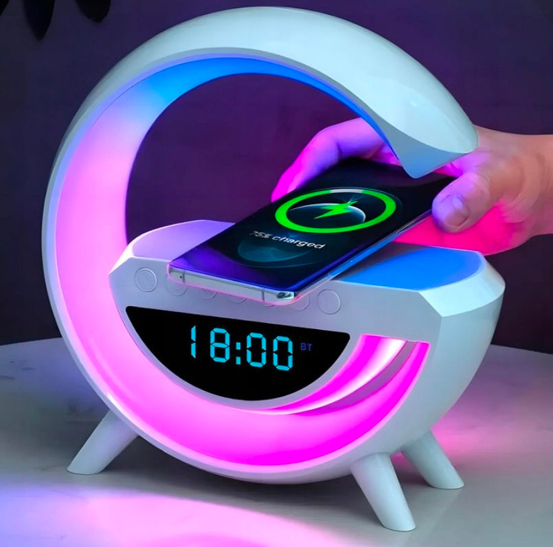 RGB LED Naktinė Lempa su Belaidžiu Įkrovimu, Laikrodžiu ir Garsiakalbiu