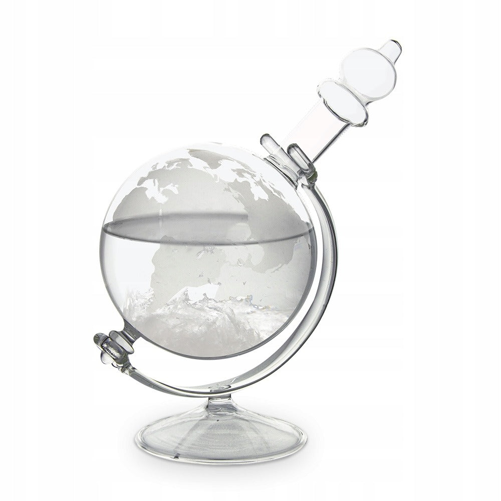 Stiklinis chemikalinis barometras „Storm Globe“ – tai elegantiška ir originali namų ar biuro dekoracija, leidžianti stebėti orų pokyčius. Gaubliuko formos barometras su subtiliu pasaulio žemėlapio raštu ne tik atrodo stilingai, bet ir turi praktinę funkciją: viduje esantys kristalai keičia formą priklausomai nuo oro sąlygų. Drumstas tirpalas pranašauja artėjančią audrą, o skaidrus – giedrą orą.