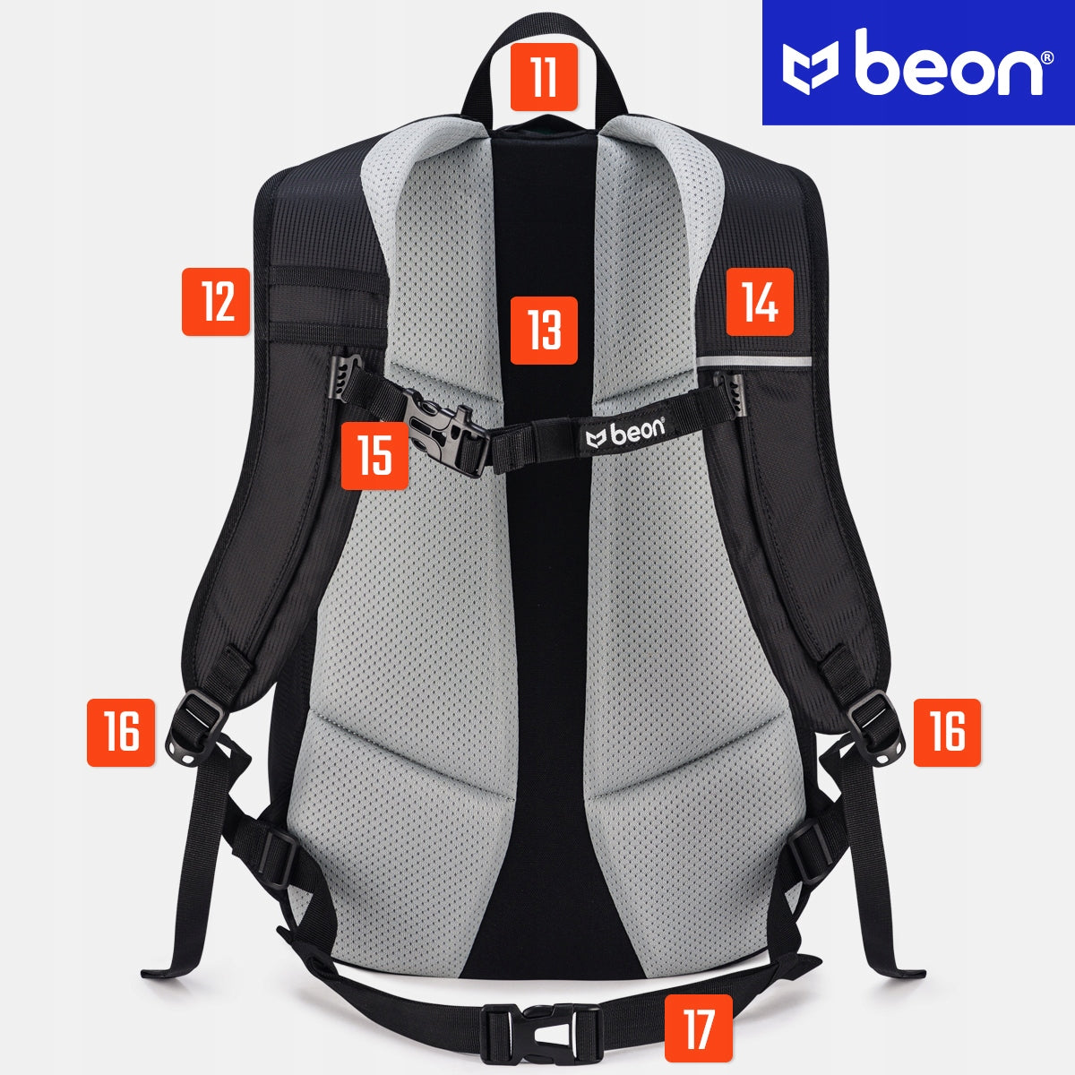 Kuprinė Beon XB256 yra sukurta atsižvelgiant į modernaus keliautojo poreikius. Jos 25 litrų talpa yra ideali kelionėms savaitgaliui ar ilgesniam žygiui, leidžianti sutalpinti visus būtinus daiktus. Paminkštintos ir reguliuojamos petnešos kartu su reguliuojamu krūtinės dirželiu (su garsiu saugos švilpuku) ir atsegamu bei reguliuojamu juosmens diržu užtikrina tolygų svorio paskirstymą ir komfortą net ir pilnai pakrovus kuprinę. Nugaros sistema su oro cirkuliacija leidžia odai kvėpuoti, sumažindama prakaitavimą karštomis dienomis ar intensyvaus fizinio krūvio metu. Minkšta puta ant petnešų dar labiau padidina komfortą nešiojimo metu.
