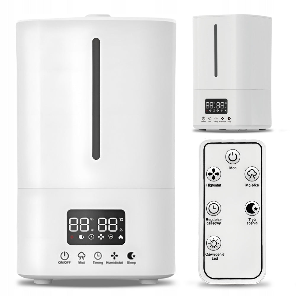 Naktinis režimas užtikrina visiškai tylų prietaiso veikimą ir pritemdo ekraną bei apšvietimą, sukuriant ramią miego aplinką. Jei vandens bake pritrūksta, drėkintuvas automatiškai išsijungia, o raudonas indikatorius ir garsinis signalas informuoja apie poreikį papildyti vandenį. Integruotas laikmatis (nuo 1 iki 12 valandų) leidžia suplanuoti prietaiso veikimo laiką pagal jūsų dienotvarkį. Galimybė naudoti eterinius aliejus leidžia mėgautis ne tik sveiku, bet ir maloniai kvepiančiu oru – tiesiog įlašinkite kelis lašus į tam skirtą vietą ir mėgaukitės aromaterapija. Valdymas itin paprastas ir patogus naudojant komplekte esantį nuotolinio valdymo pultelį, kuris leidžia reguliuoti visus prietaiso nustatymus neiškėlus kojos iš sofos.