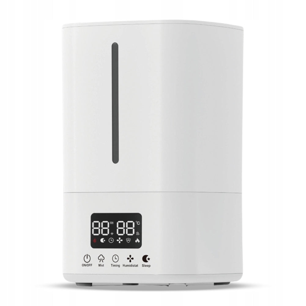 Šis ultragarsinis drėkintuvas naudoja naujausią 1,7 milijono vibracijų per sekundę technologiją, kad suskaidytų vandenį į mikroskopines 1–5 µm dydžio daleles. Rezultatas – švelni, lengvai įsisavinama miglelė, kuri neuždengia paviršių ir yra draugiška alergiškiems žmonėms bei vaikams. Dėl didelio, 5 litrų vandens rezervuaro, prietaisas gali veikti iki kelių valandų be papildymo, užtikrindamas ilgalaikį komfortą. Galite pasirinkti vieną iš trijų intensyvumo lygių (P1, P2, P3), o automatinė drėgmės kontrolė leis nustatyti pageidaujamą drėgmės lygį nuo 45% iki 90% (kas 5%). Kai tik bus pasiektas nustatytas lygis, drėkintuvas automatiškai sustabdys miglelės gamybą, taupydamas energiją.