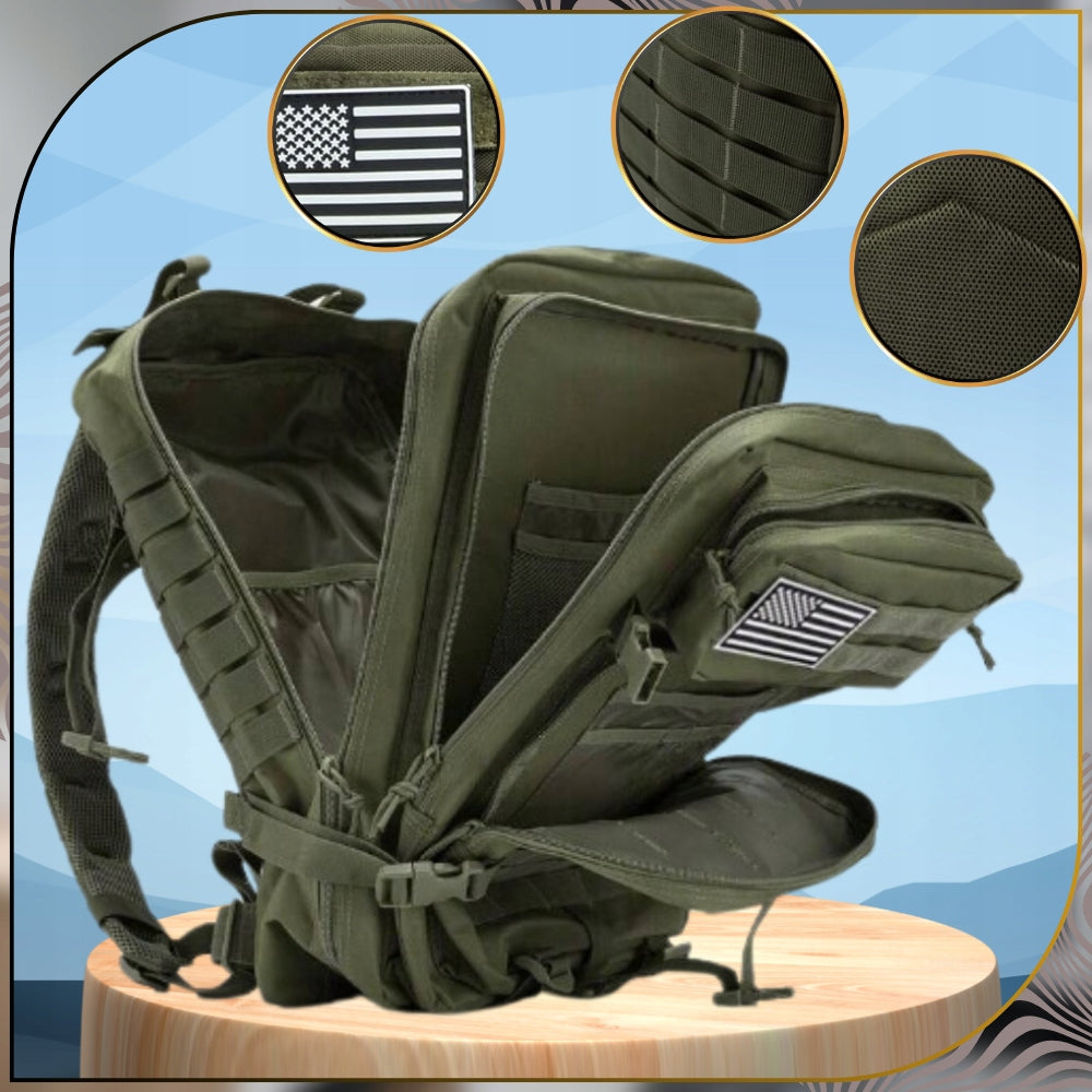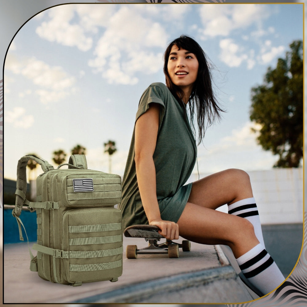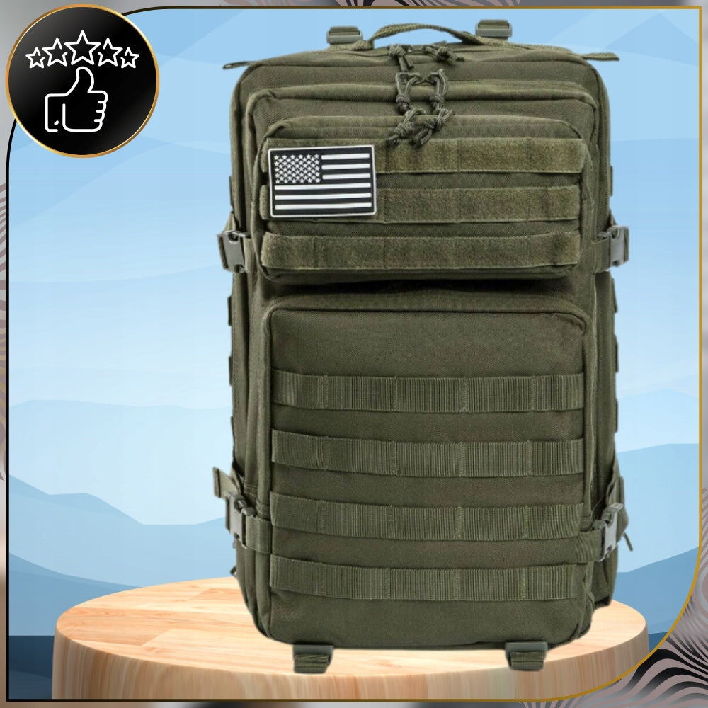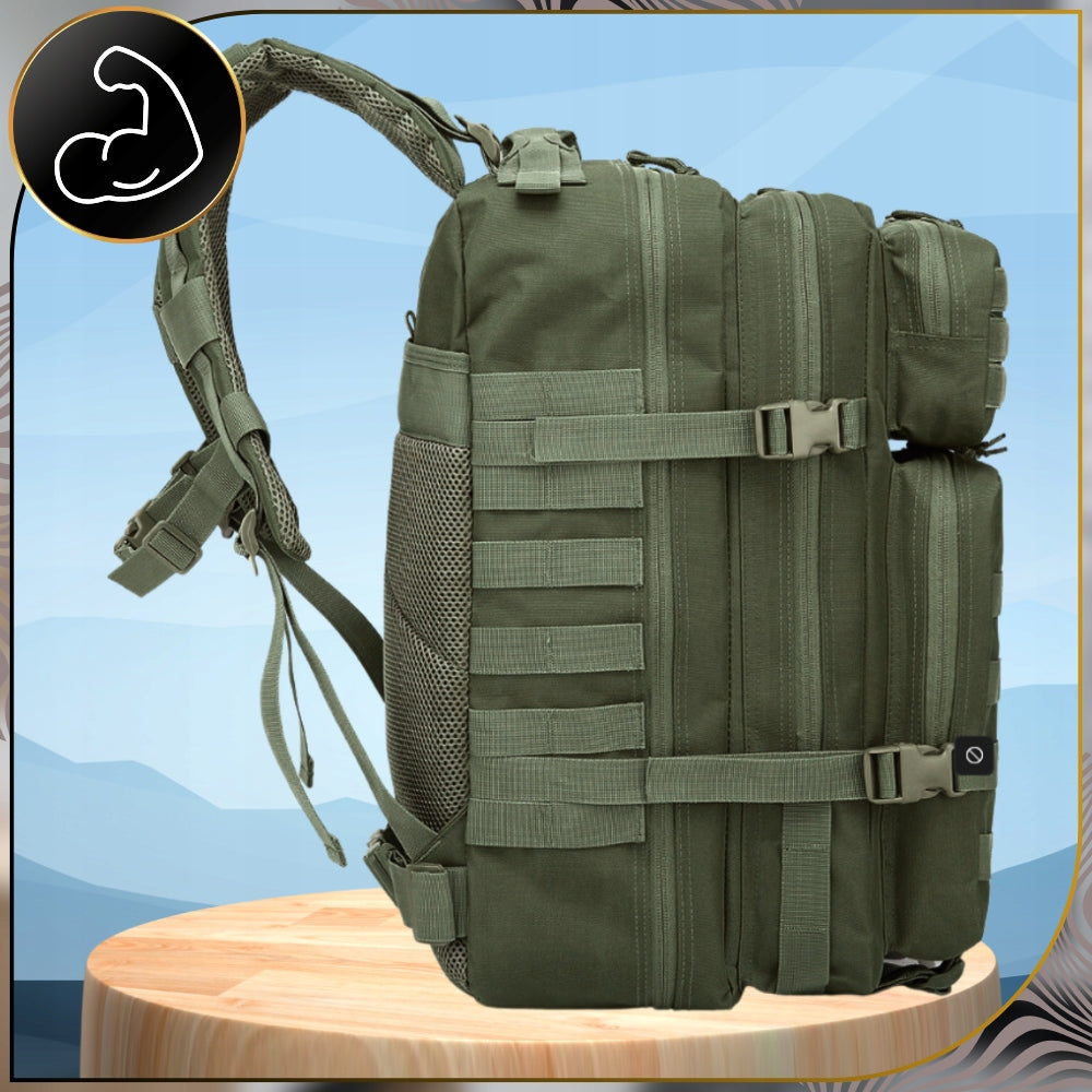 Ši 45 litrų talpos kuprinė išsiskiria savo taktinėmis savybėmis ir apgalvotu dizainu. Pagrindinis jos privalumas – plati MOLLE sistema, leidžianti lengvai pritvirtinti papildomus dėklus, įrankius ar kitus aksesuarus, taip pritaikant kuprinę specifiniams jūsų poreikiams. Keturi pagrindiniai skyriai su vidinėmis kišenėlėmis padeda efektyviai organizuoti daiktus, nuo savaitės kelionės drabužių iki mokyklinių vadovėlių ar sporto inventoriaus. Tvirtas 600D poliesterio audinys yra atsparus trinčiai ir dėvėjimuisi, o vandeniui atspari danga apsaugo turinį nuo drėgmės, net ir per lietų.
