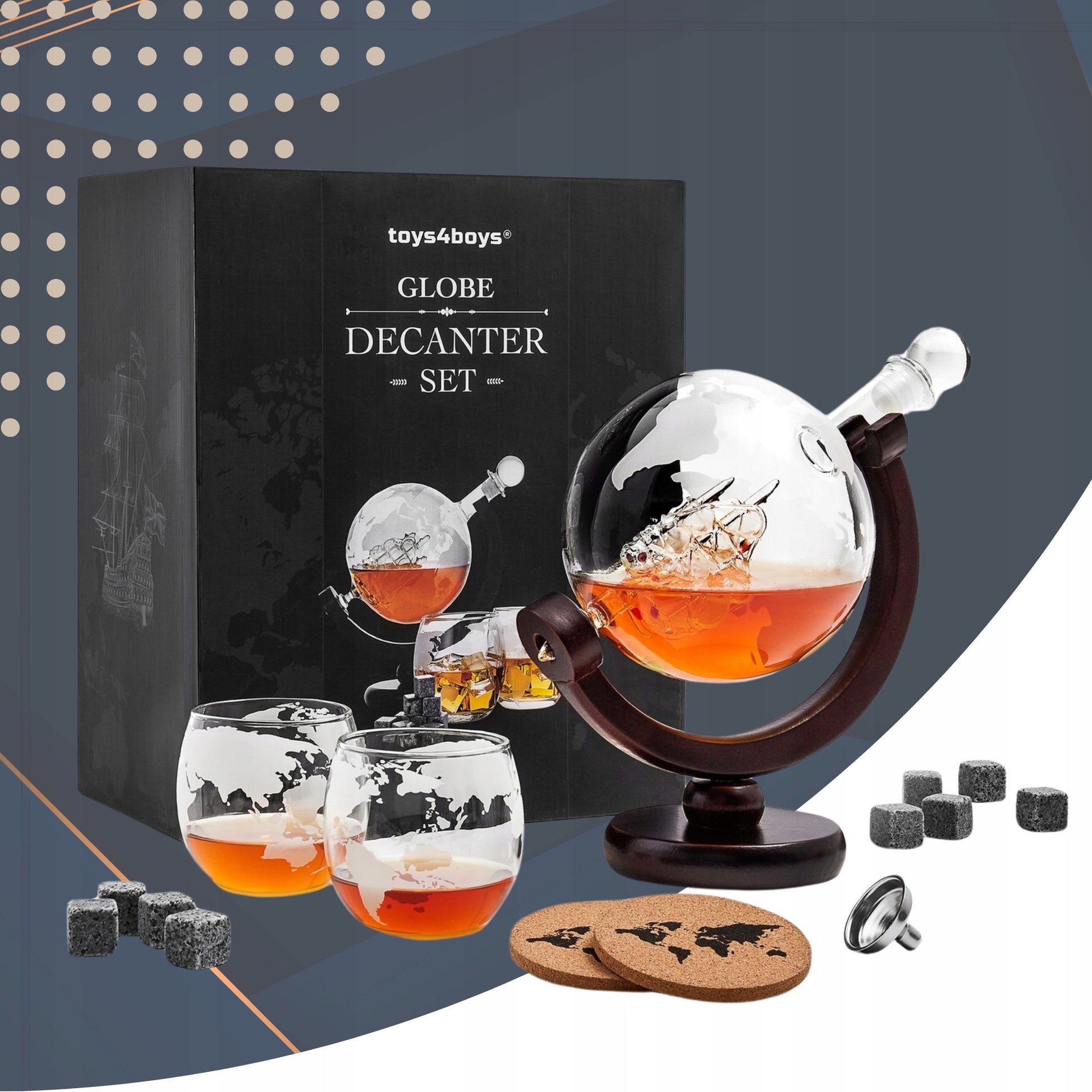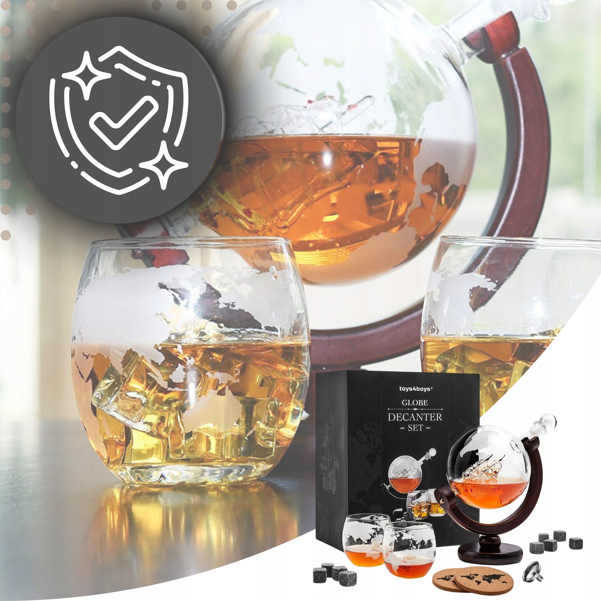 Šis rinkinys sukurtas taip, kad suteiktų visapusišką malonumą. Jame rasite ne tik elegantišką, sandariai uždaromą globuso formos karafką, bet ir dvi specialias viskio taures bei devynis daugkartinius akmenukus. Akmenukai leidžia atšaldyti gėrimą nepraskiedžiant jo vandeniu, išlaikant originalų skonį ir aromatą. Viskas supakuota stilingoje dėžutėje, paruošta dovanoti be papildomų pastangų.