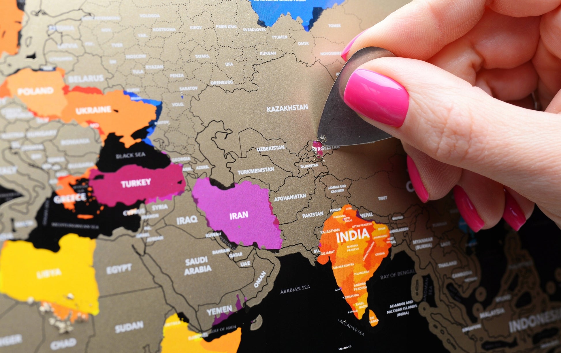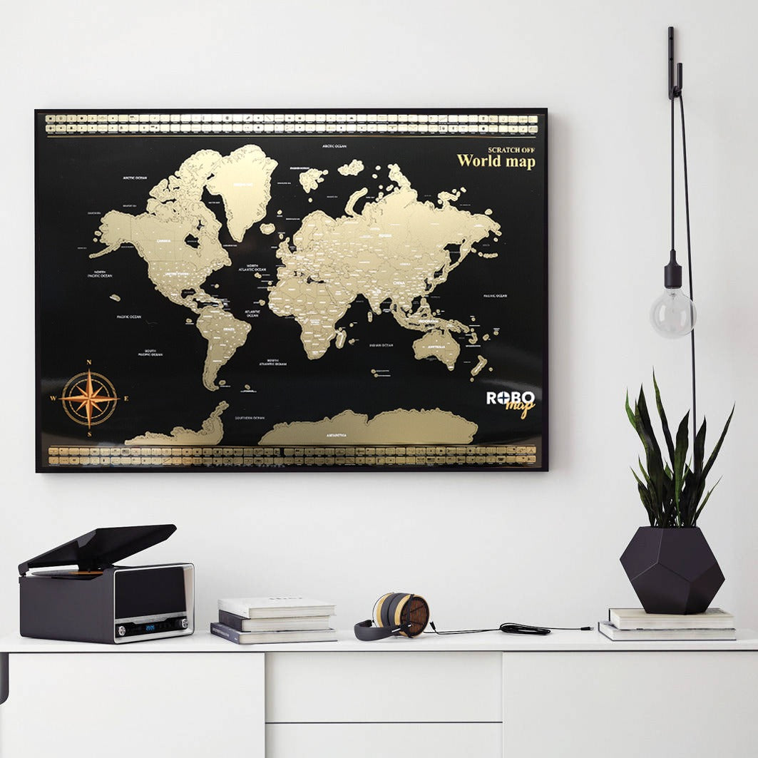 Auksinis kelionių skrečo žemėlapis 40x60 cm – dovana keliautojui