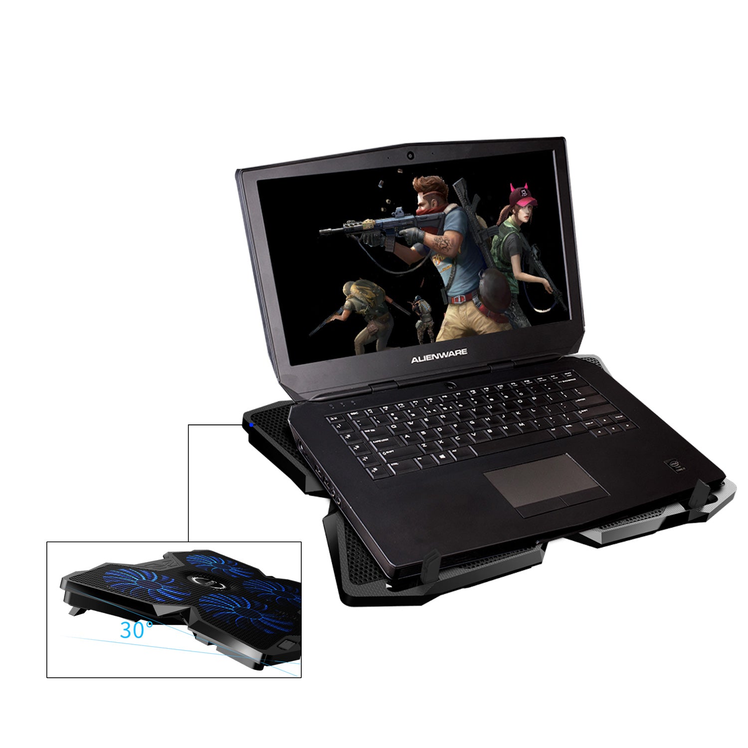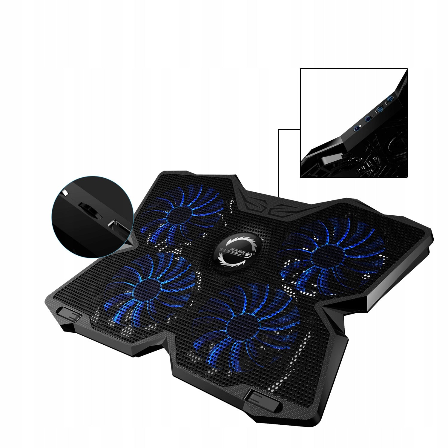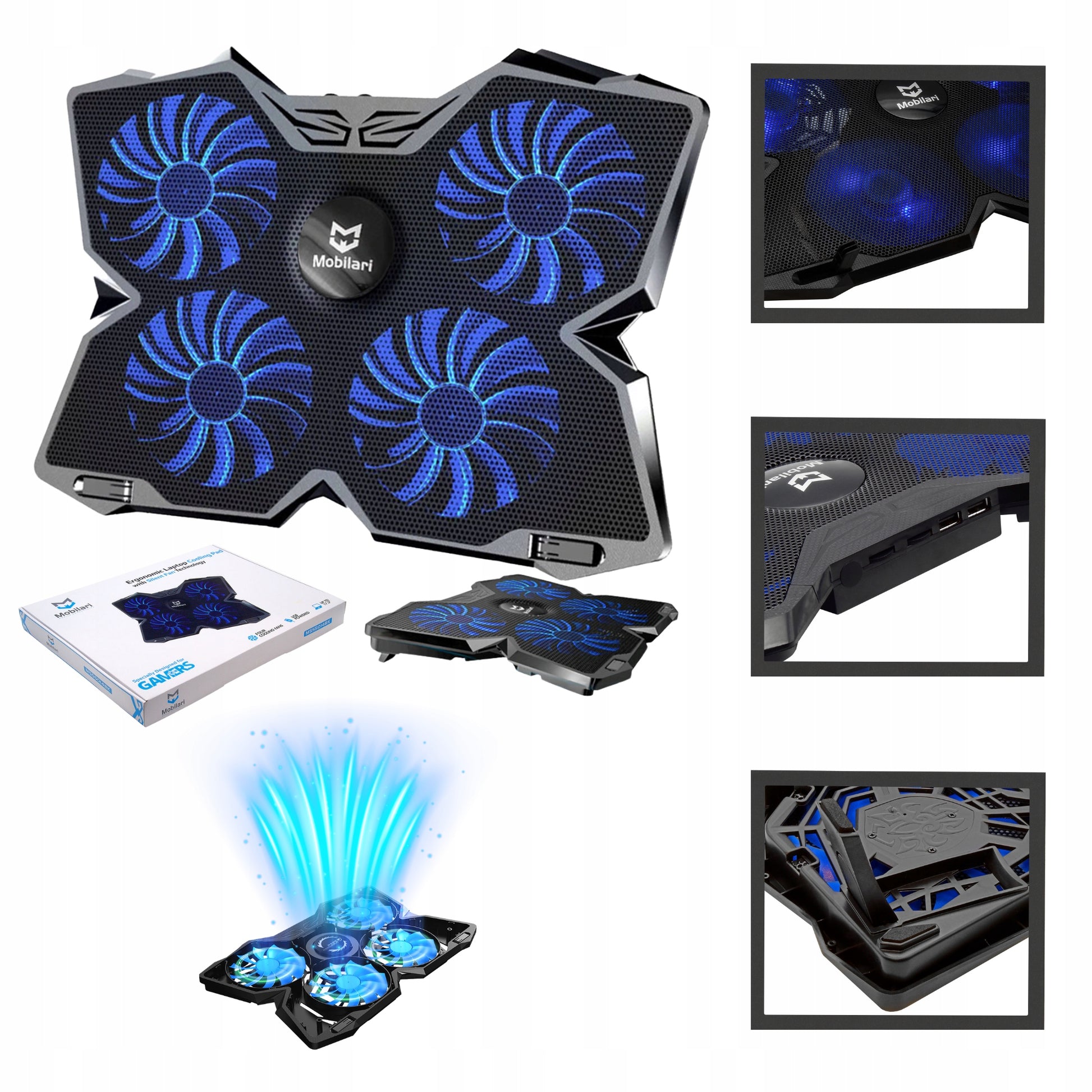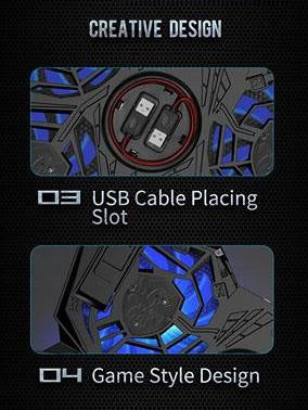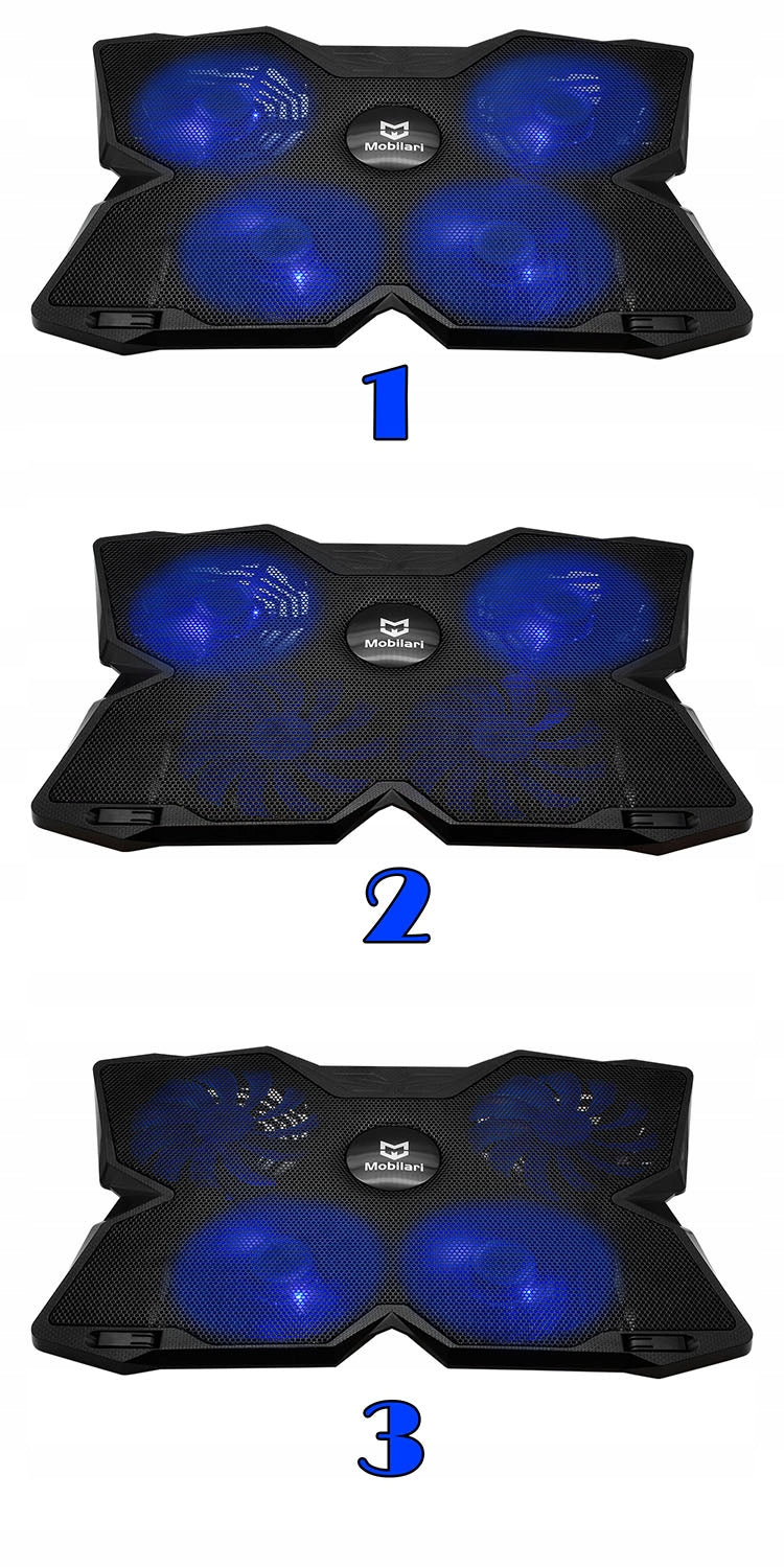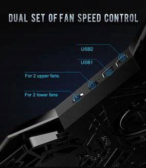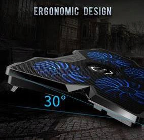 Suprantame, jog detalės yra svarbios, todėl pateikiame visą techninę informaciją, kuri padės Jums apsispręsti. Stovo matmenys yra 408 x 287 x 29mm, pagamintas iš patvaraus ABS plastiko su metaline tinklelio viršutine dalimi. Svoris – 650 gramų. Jame integruoti keturi 140 mm skersmens ventiliatoriai, su mėlynu LED pašvietimu ir hidrauliniais guoliais, užtikrinančiais ilgaamžiškumą bei tylų veikimą (1000 RPM +/-10%). Oro srautas siekia 75,35 CFM. Maitinamas per USB 3.0/2.0/1.1 (5V DC) ir turi du papildomus USB 2.0 prievadus duomenų perdavimui iki 480 Mb/s. Reguliuojamas dviejų pakopų kampas ir vibravimą mažinančios kojelės papildo ergonomiškumą.