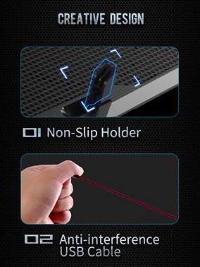 - Žymiai sumažina nešiojamo kompiuterio temperatūrą, pailgindamas jo tarnavimo laiką.