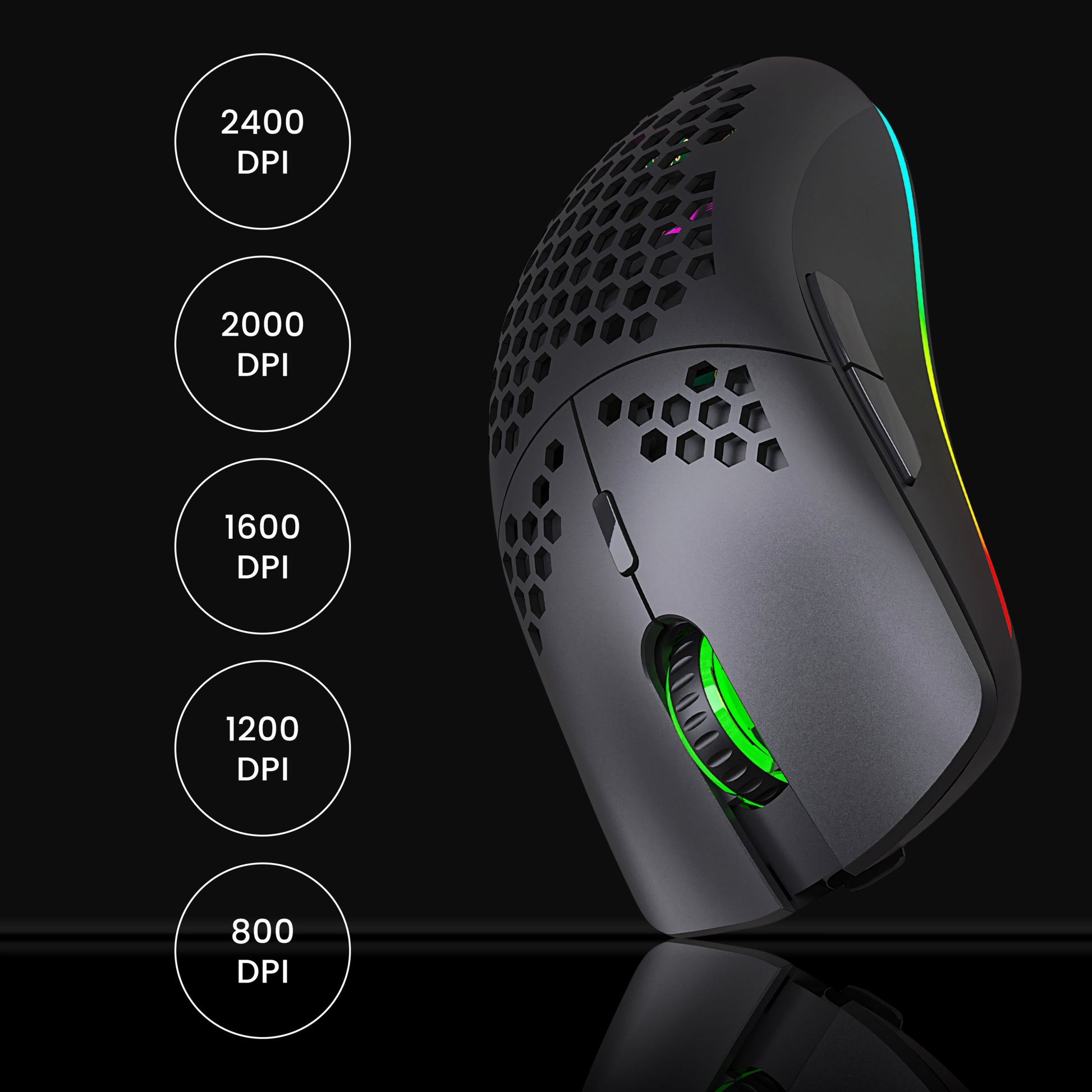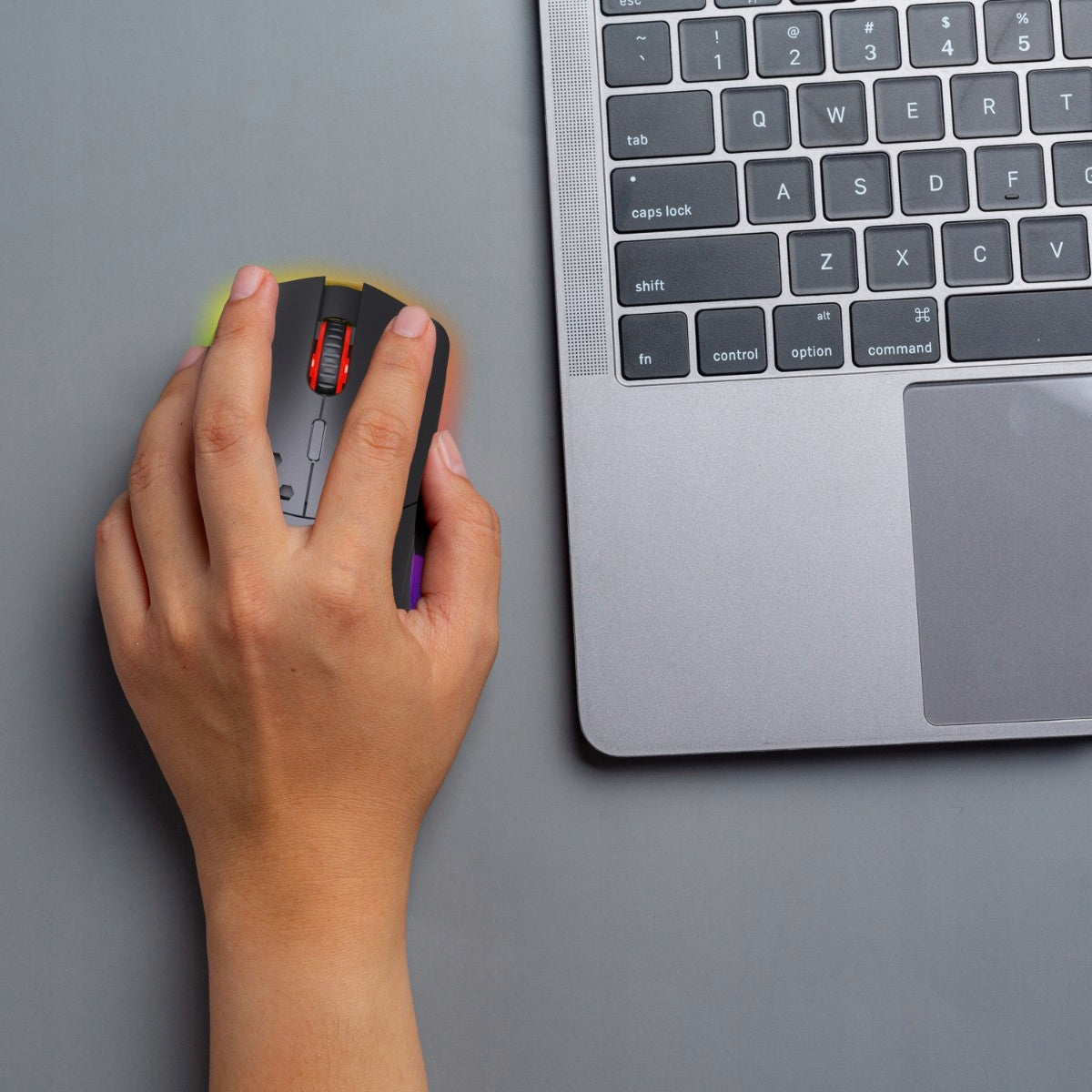 Mūsų belaidė žaidimų pelė suteikia galimybę personalizuoti savo žaidimų aplinką. Pasirinkite vieną iš 11 skirtingų RGB apšvietimo režimų ir mėgaukitės dinamiškais efektais, kurie ne tik pagyvina jūsų darbo vietą, bet ir suteikia ypatingos atmosferos jūsų žaidimų sesijoms. Nuo subtilios spalvų kaitos iki ryškių, pulsuojančių efektų – kiekvienas režimas sukurtas taip, kad papildytų jūsų žaidimų patirtį ir sukurtų unikalų, žaidimo dvasią atspindintį stilių.
