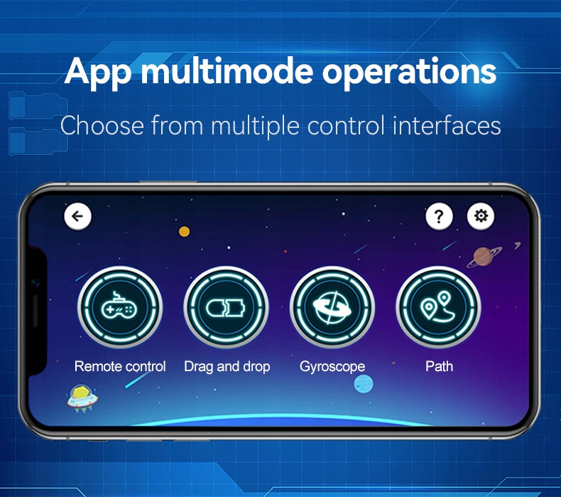 Automobilis „Blade“ išsiskiria moderniausia valdymo sistema „Dual Mode“. Tai reiškia, kad Jūs galite rinktis, kaip norite jį valdyti: tradiciniu būdu, naudodami komplekte esantį 2.4 GHz radijo dažnio pultelį, arba pasitelkdami išmanųjį telefoną su specialia „Bluetooth“ programėle. Programėlė, kurią lengvai galite atsisiųsti nuskenavę QR kodą ant pakuotės (suderinama su Android ir iOS), atveria dar daugiau valdymo galimybių. Ji siūlo net 4 skirtingus valdymo režimus: nuo paprasto nuotolinio valdymo ekrane, programavimo komandų sekos iki judesio jutikliu valdomo režimo (gyroscope control) ar trasos piešimo ekrane (path mode). Automobilis pasiekia iki 5.5 km/h greitį ir gali būti valdomas iš daugiau nei 25 metrų atstumo, užtikrinant stabilų ryšį.