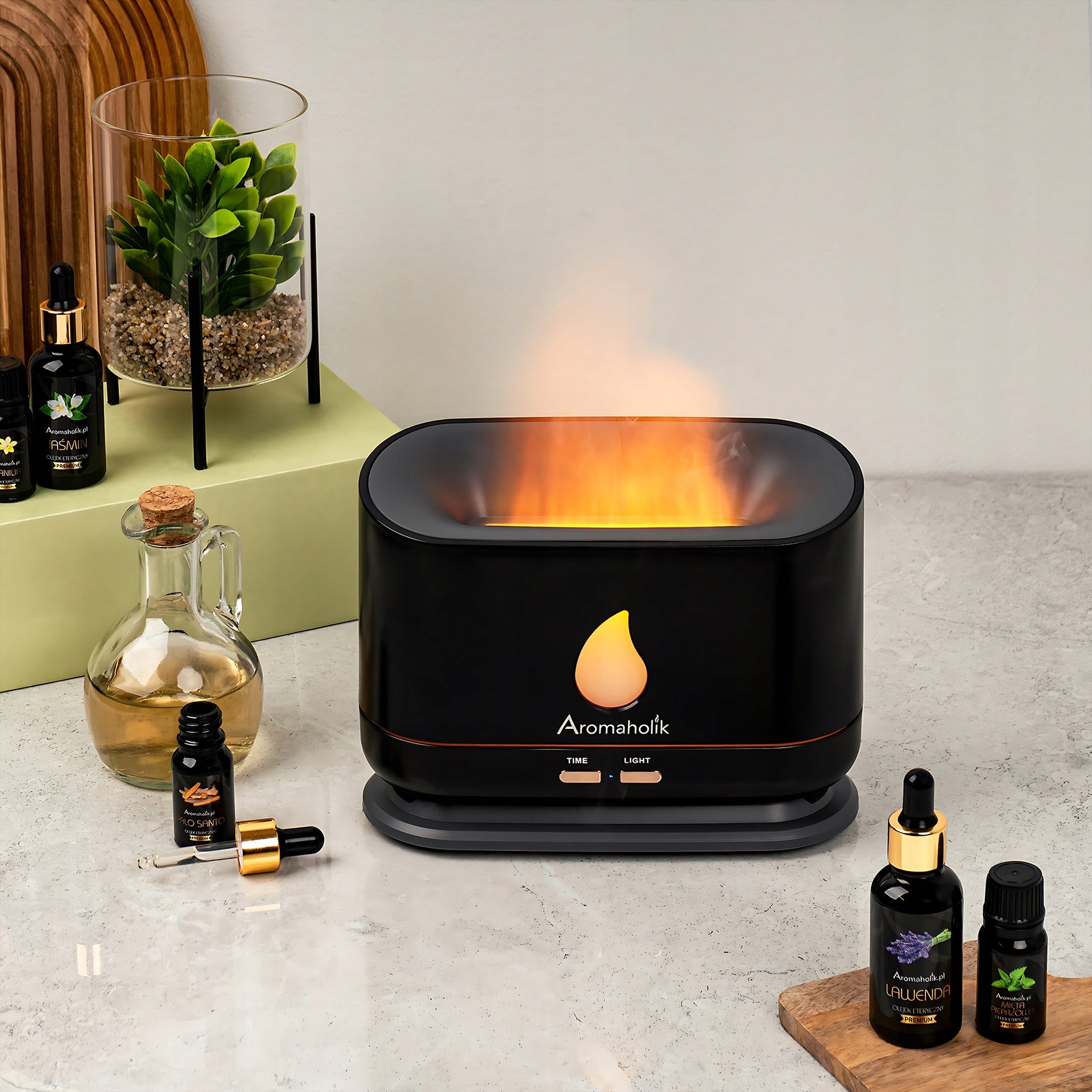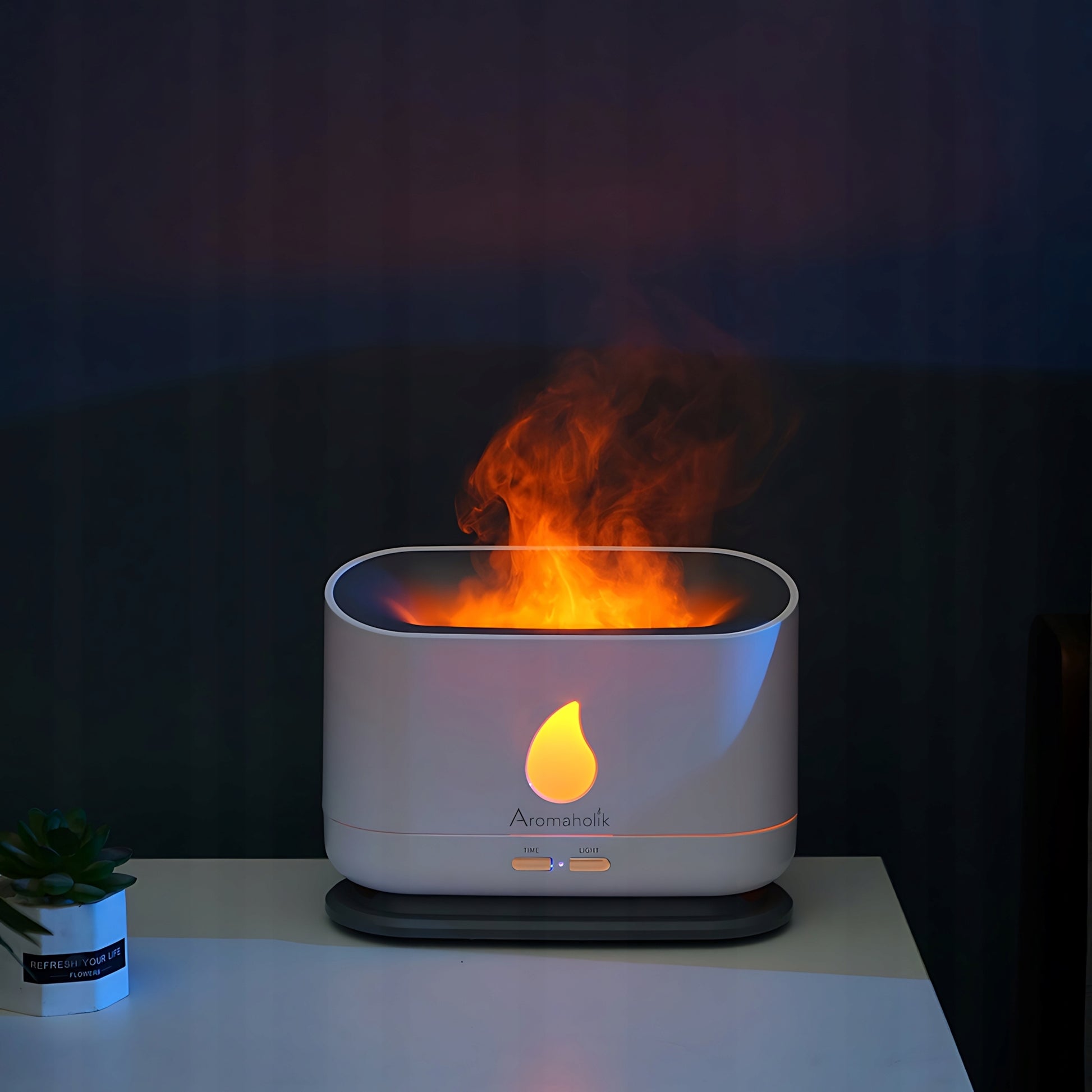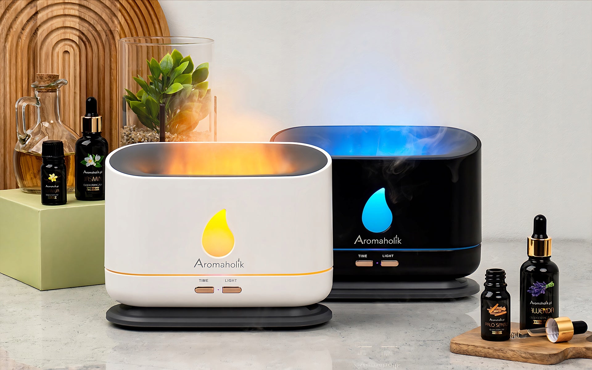 Atgaivinkite savo namus su unikaliu Dovanų drėkintuvu eteriniams aliejams su LED liepsnos efektu!