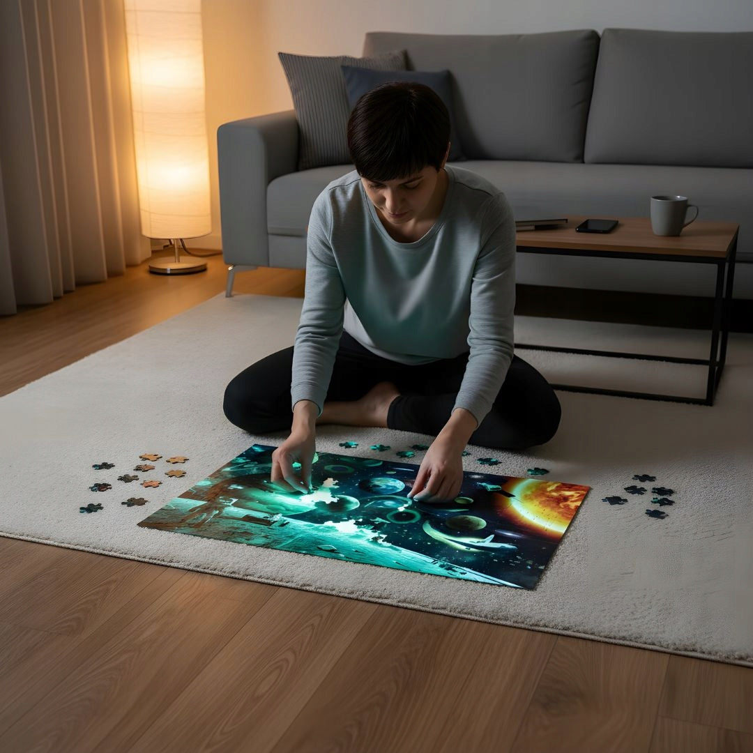 Ar kada nors svajojote paliesti žvaigždes? Su mūsų „Kosmonauto“ dėlionėmis ši svajonė tampa realybe, suteikdama jums galimybę savo rankomis sukurti nuostabų kosminį peizažą. Po surinkimo, kai išjungsite šviesą, paveikslas atsiskleis nauju, kvapą gniaužiančiu švytėjimu. Tai sukuria nepakartojamą patirtį ir paverčia dėliojimą dar patrauklesniu užsiėmimu. Kiekvienos detalės preciziškas prigludimas ir aukščiausios kokybės medžiagos užtikrina malonumą be pastangų, o galutinis rezultatas – darbas, kuriuo didžiuositės ir galėsite eksponuoti.