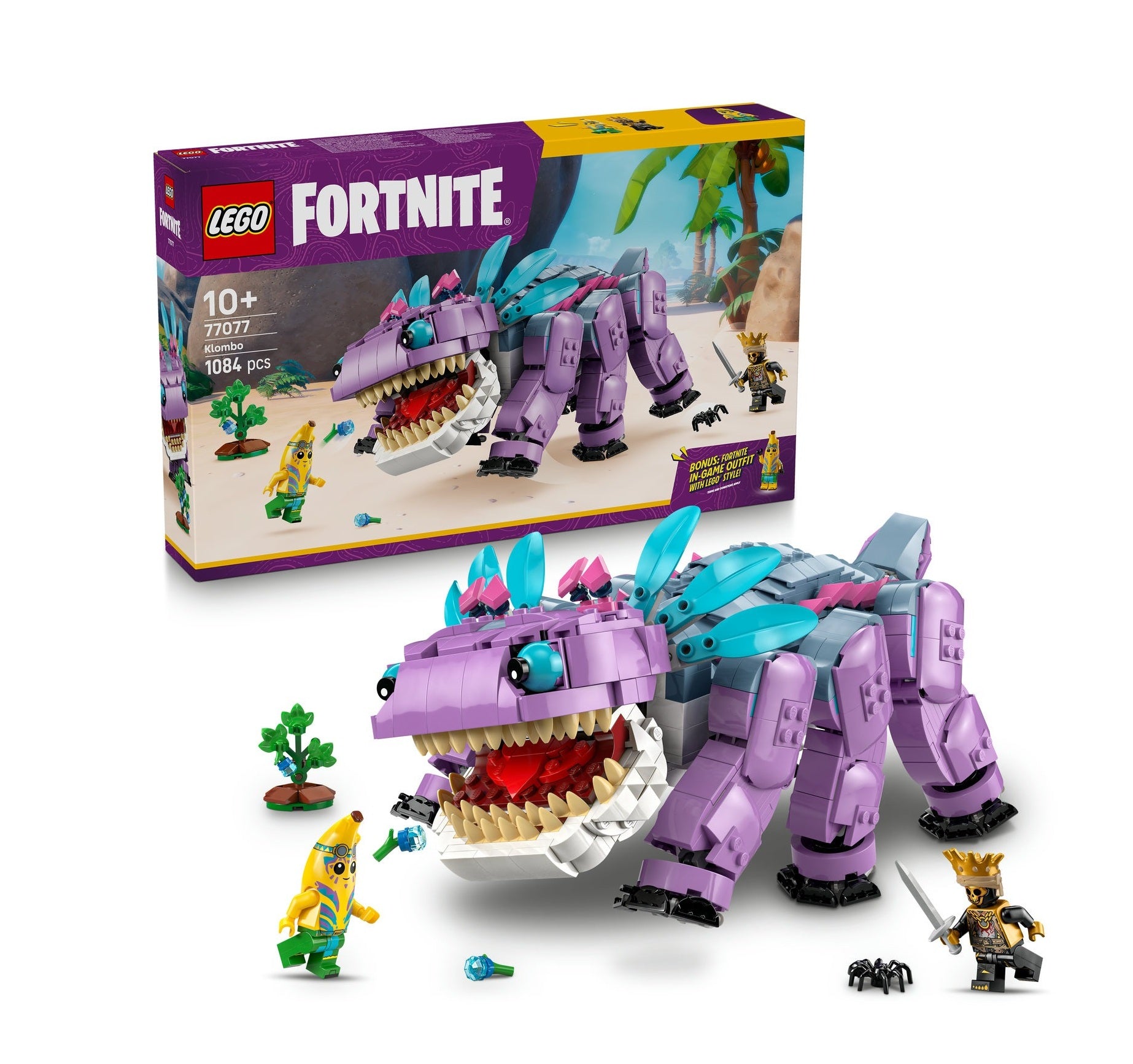 Pastatyk legendinį Fortnite veikėją Klombo iš 1084 LEGO detalių! Šis didelis, judančias kojas, nasrą ir uodegą turintis padaras leis atkurti žaidimo nuotykius realybėje. Rinkinyje yra dvi minifigūrėlės – Tropical Adventure Skin ir Oro, taip pat specialus QR kodas, suteikiantis išskirtinę aprangą „LEGO Fortnite“ žaidime. Puiki dovana „Fortnite“ ir LEGO gerbėjams!