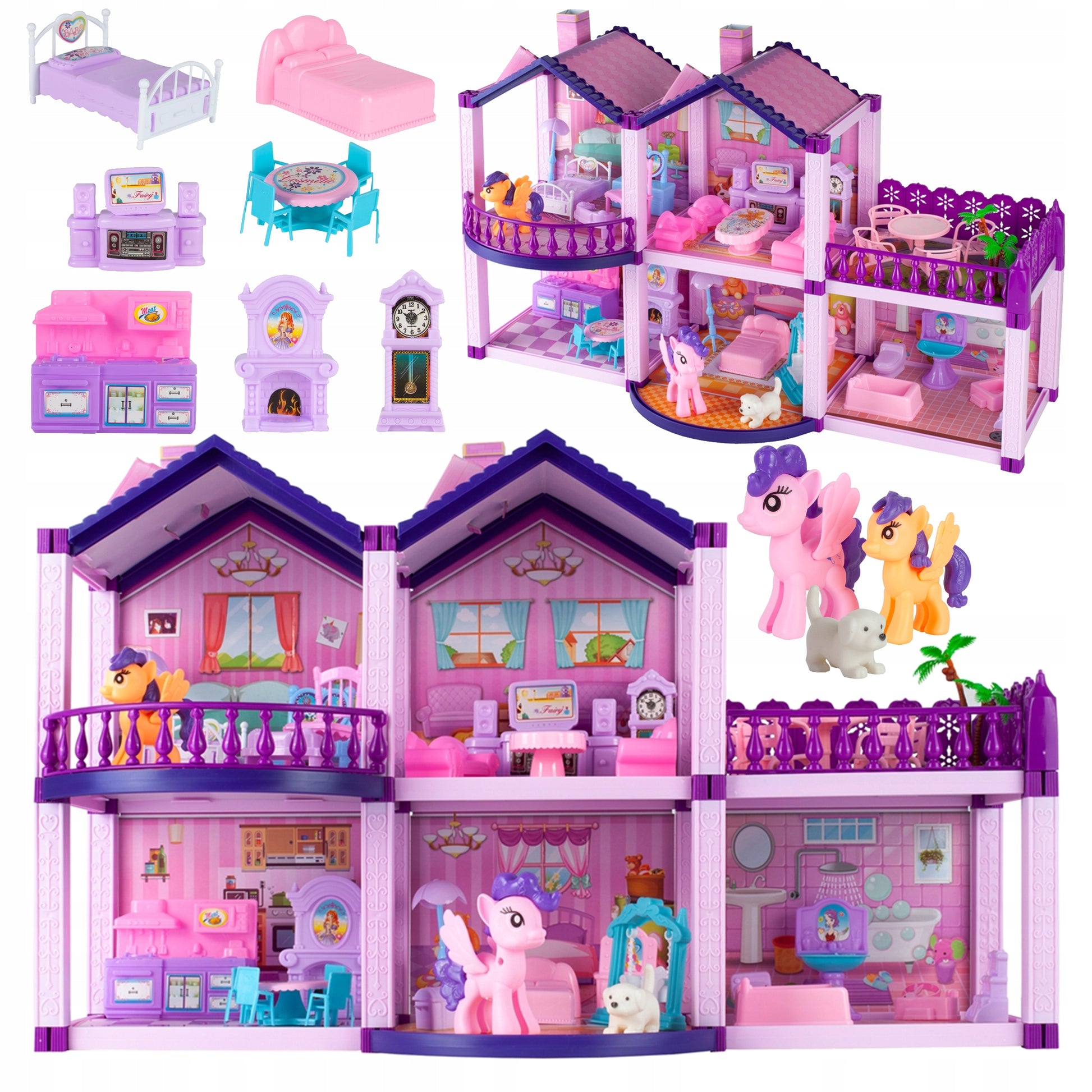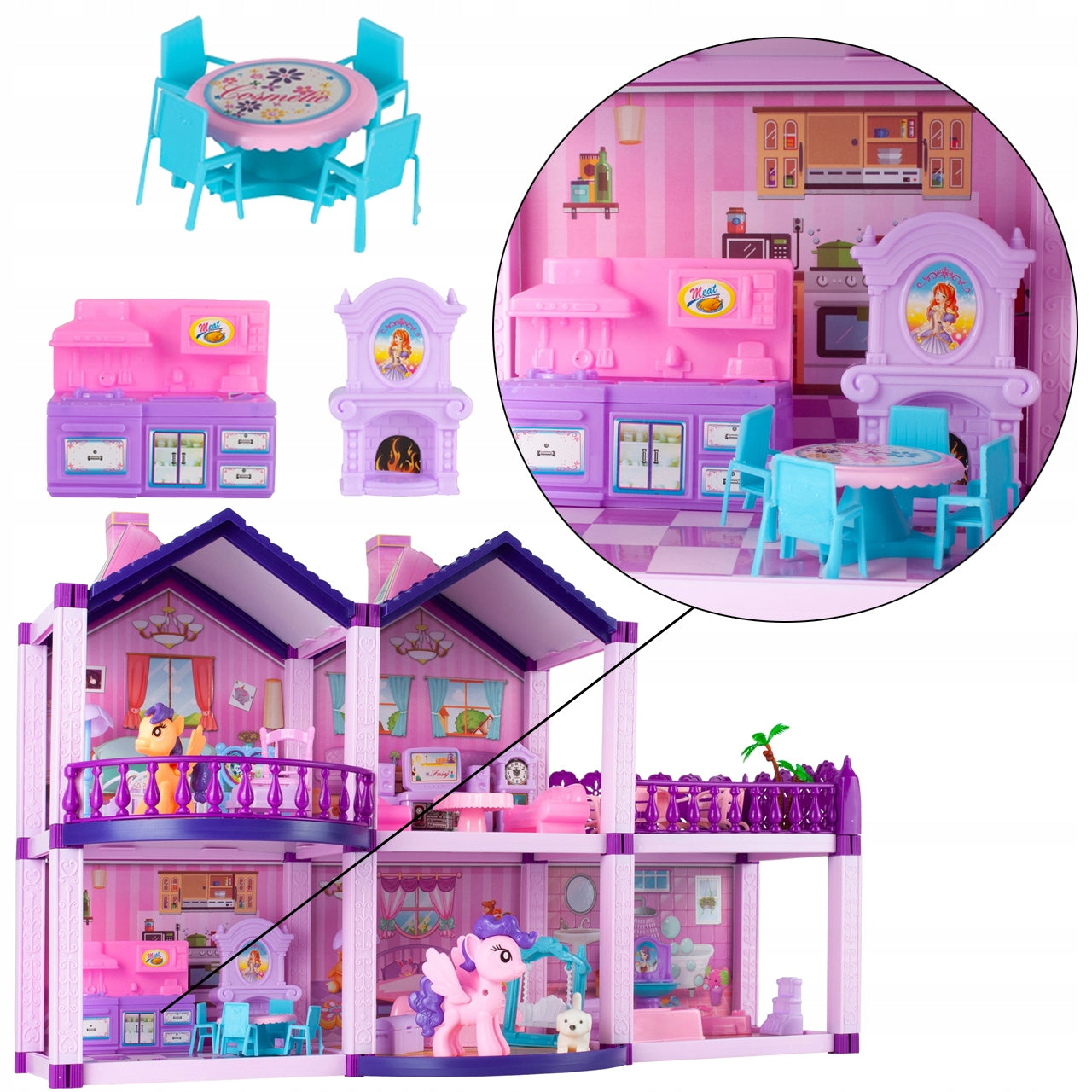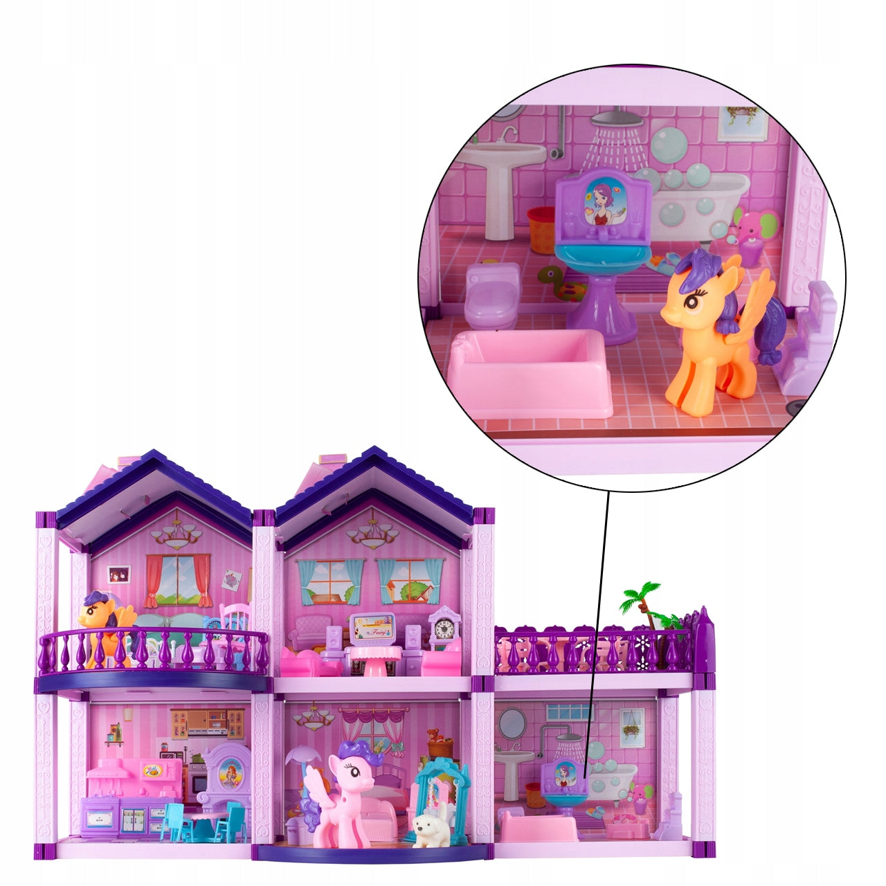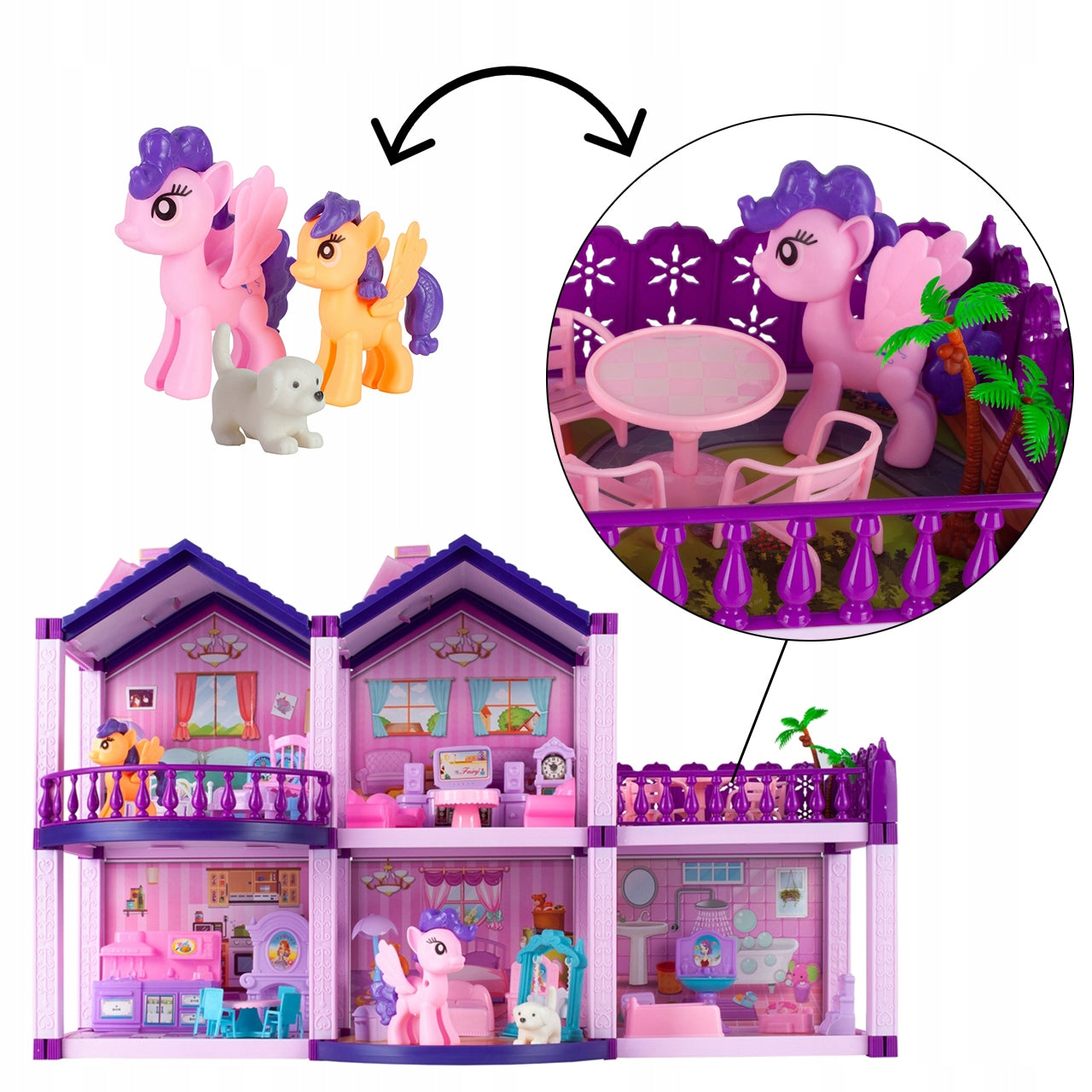 Lėlių namelis poniams VILLA arkliai šuo baldai poniams vaikams rožinis