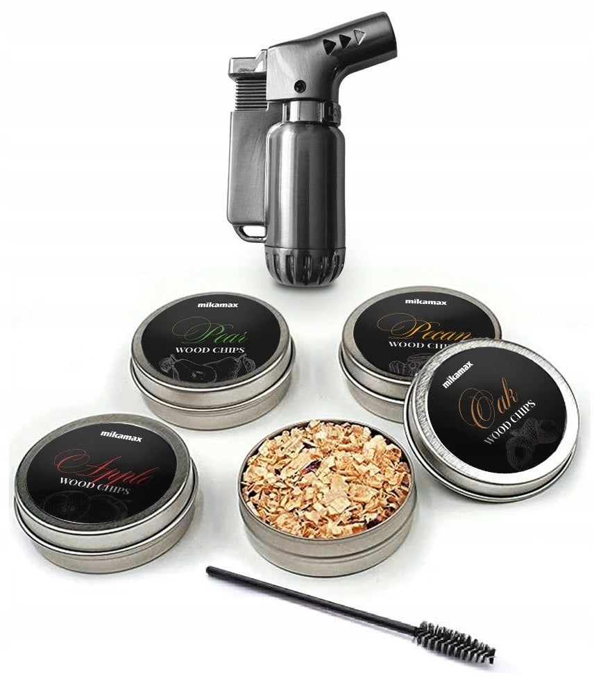 Ši išskirtinė viskio rūkyklės sistema leidžia jums eksperimentuoti su natūraliais medienos dūmų aromatais, kurie suteikia gėrimams gilumo ir sudėtingumo. Rinkinys yra universalus ir tinka daugeliui viskio bei kokteilių stiklinių, kurių skersmuo siekia iki 10 cm. Kiekvienas gurkšnis taps tikru atradimu, nes medžio drožlės (ąžuolas, obuolys, kriaušė, pekano riešutas) suteikia skirtingus, subtilius aromatinius niuansus. Norint pasiekti geriausių rezultatų, rekomenduojama prieš naudojimą atšaldyti stiklinę – taip dūmai geriau prilimpa prie paviršiaus. Taip pat svarbu degiklį laikyti stiklinės centre, kad dūmai efektyviai sklistų į apačią.