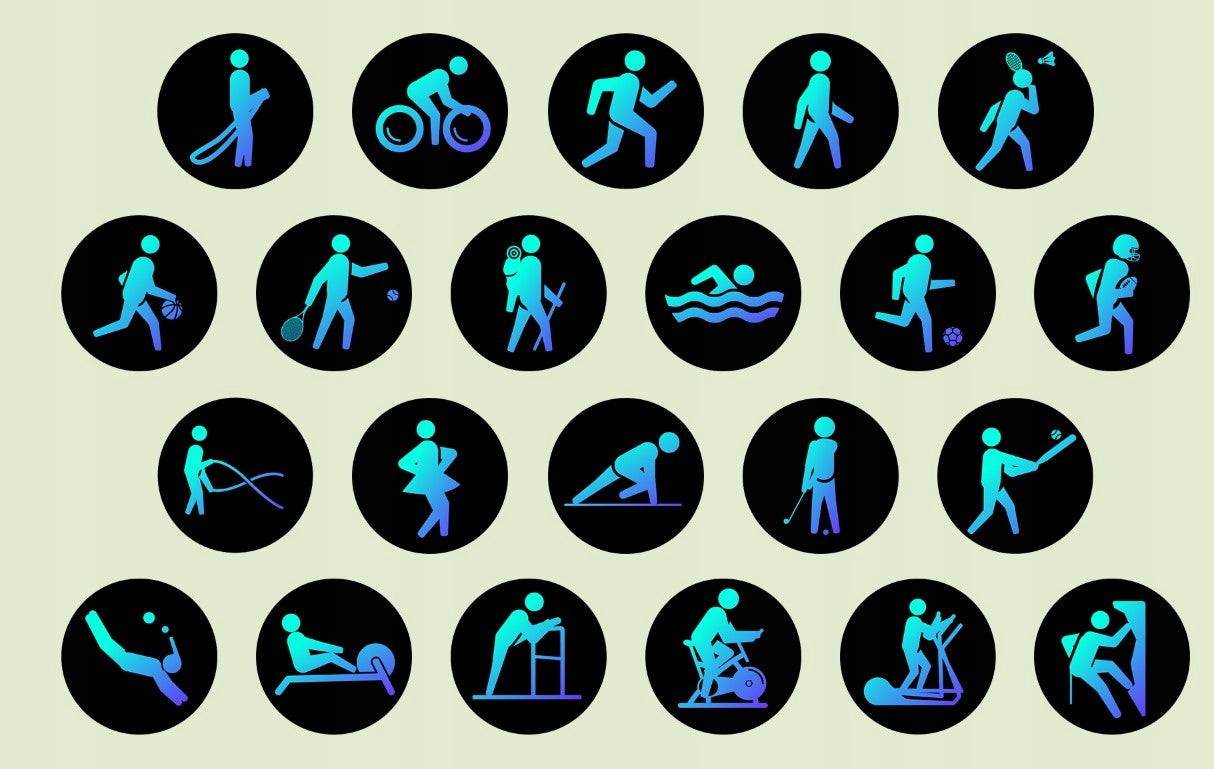 - Gausybė Sporto Režimų: Per 100 skirtingų sporto režimų įvairiai veiklai.