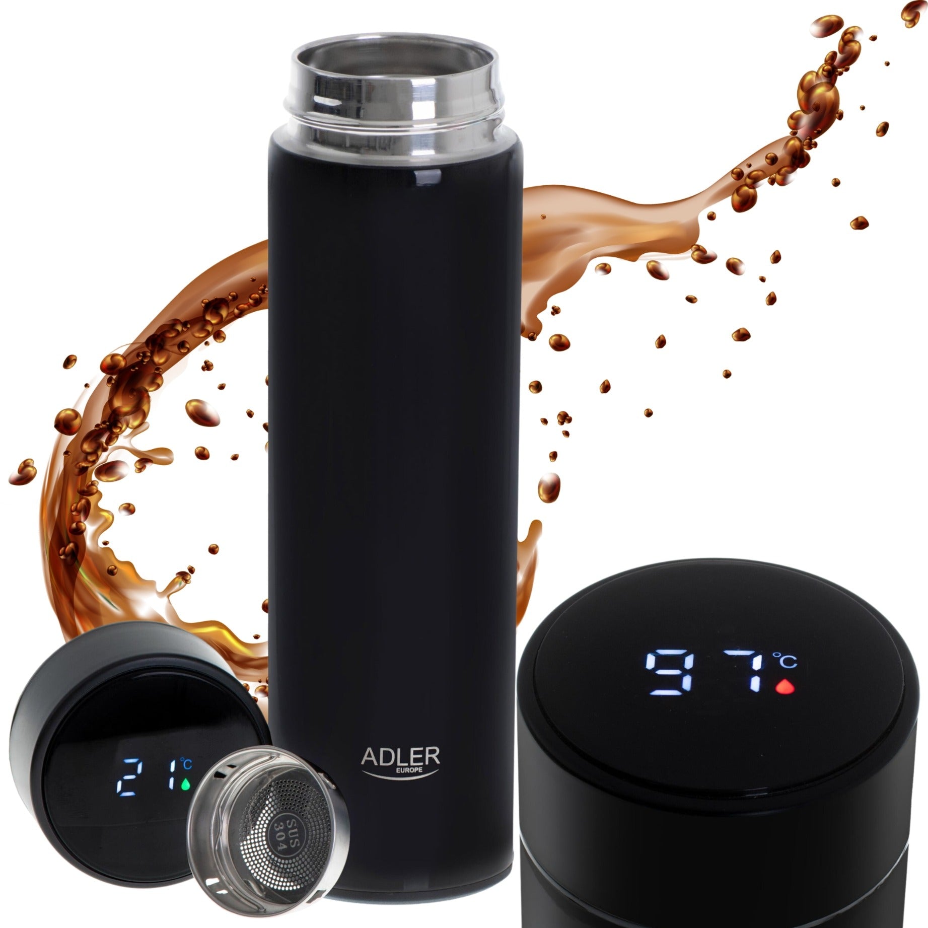 🥤 Terminis kavos puodelis su LED ekranu ir sieteliu – 473 ml