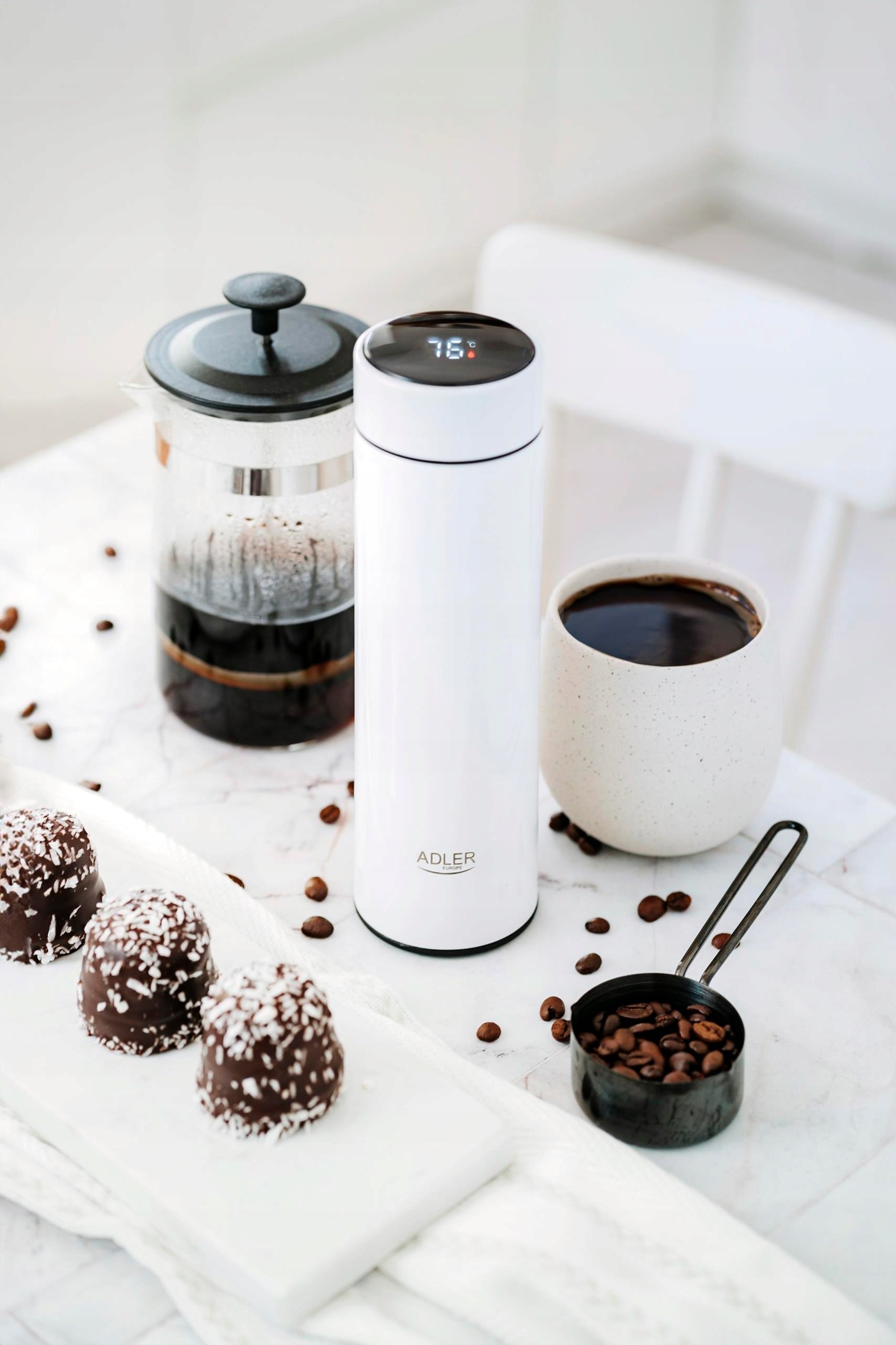 Modernus ir stilingas terminis puodelis – puikus pasirinkimas tiems, kurie vertina komfortą, funkcionalumą ir šiuolaikinį dizainą. Integruotas LED jutiklinis ekranas rodo gėrimo temperatūrą, todėl visada žinosite, ar kava dar karšta, ar jau tinkama gerti.