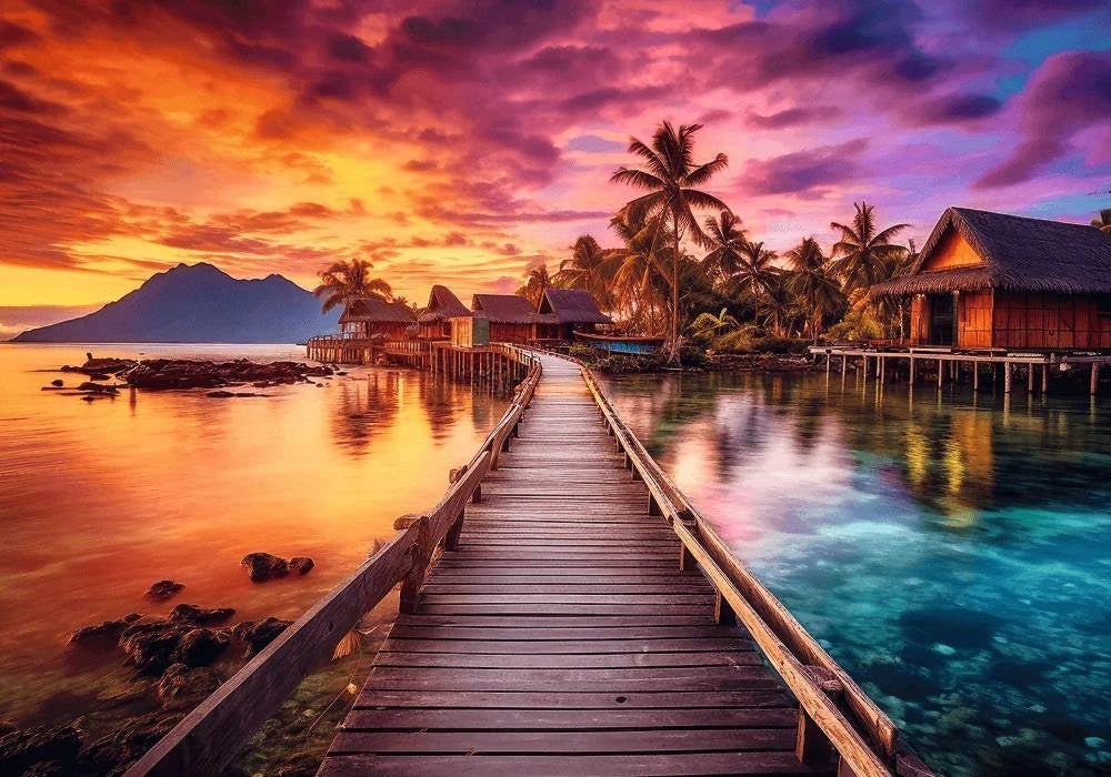 Dėlionė "Rojaus sala" nukels Jus į idilišką pasaulį, kur švelnūs saulės spinduliai liečia tropinius krantus, o ramybės jausmas apima vos pradėjus dėlioti. Baigta dėlionė, kurios matmenys bus įspūdingi 683x480 mm, taps nuostabia interjero puošmena – priminimu apie svajonių atostogas ar tiesiog meno kūriniu, sukurtu Jūsų pačių pastangomis. Tai puiki dovana, skatinanti kūrybiškumą, lavinanti kantrybę ir erdvinį mąstymą. Leiskite sau akimirką atsipalaidavimo ir pasimėgaukite šiuo vaizdingu peizažu, kurio kiekviena detalė atskleidžia gamtos didybę.