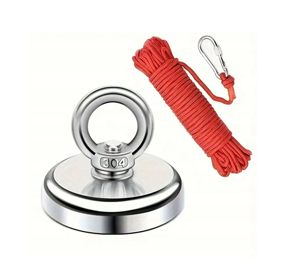 Atraskite magnetinės žvejybos pasaulį su šiuo galingu neodimio magnetu! Magnetas traukia iki 50 kg metalo, todėl lengvai ištrauksi sunkesnius objektus iš upės ar ežero dugno. Komplektą sudaro patvari 10 metrų virvė ir tvirtas karabinas, užtikrinantys saugumą ir patogumą naudojant.